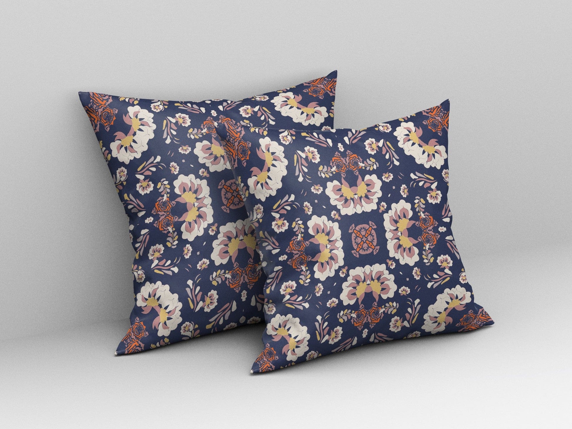 Unique and decorative, this comfortable 18" x 18" blue and white floral blown seam suede throw pillow will leave a lasting impression. Decorative throw pillows not only add color and dimension to your space but can be comfy and supportive when you are lounging and cuddling as well. A great decorative accessory for your favorite chair, to accent your sofa, or to use as part of your bed ensemble. 5" H x 18" W x 18" D