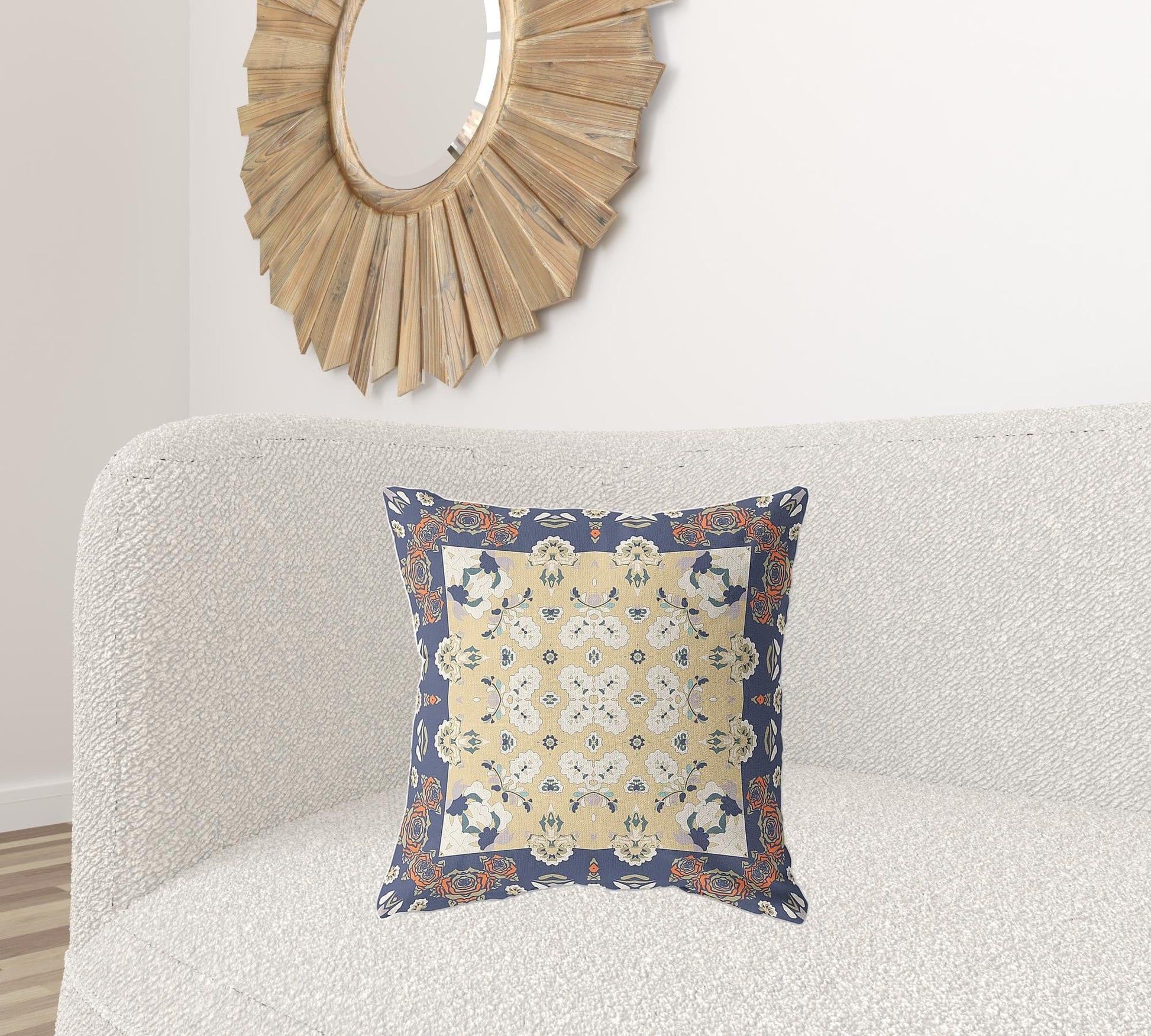 18" X 18" Blue Yellow Floral Blown Seam Suede Throw Pillow