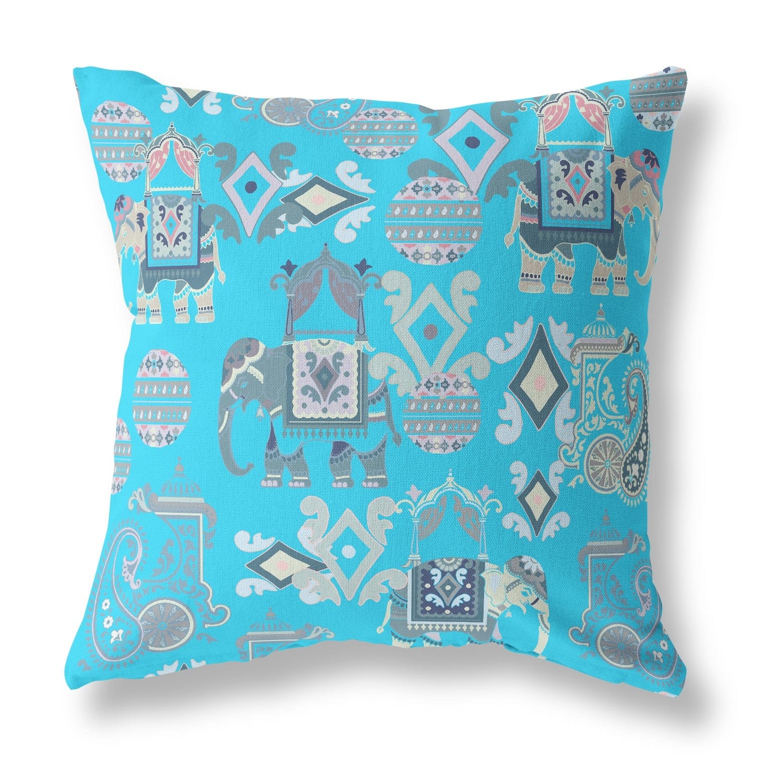 18" X 18" Bright Blue And Gray Paisley Zippered Suede Throw Pillow
