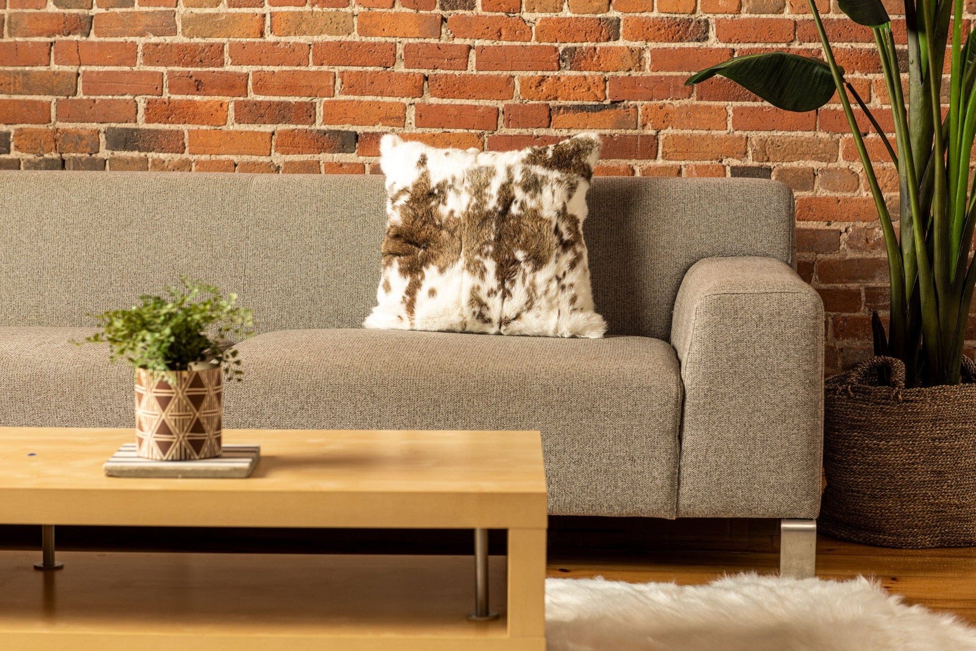 Add an air of fashion to your room and rejuvenate the space with this cute and fashionable 18" x 18" brown and white rabbit zippered natural fur animal print throw pillow. For anyone that loves to decorate or accent their space with color and texture. A great decorative accessory for your favorite chair, to accent your sofa, or to use as part of your bed ensemble. 5" H x 18" W x 18" D