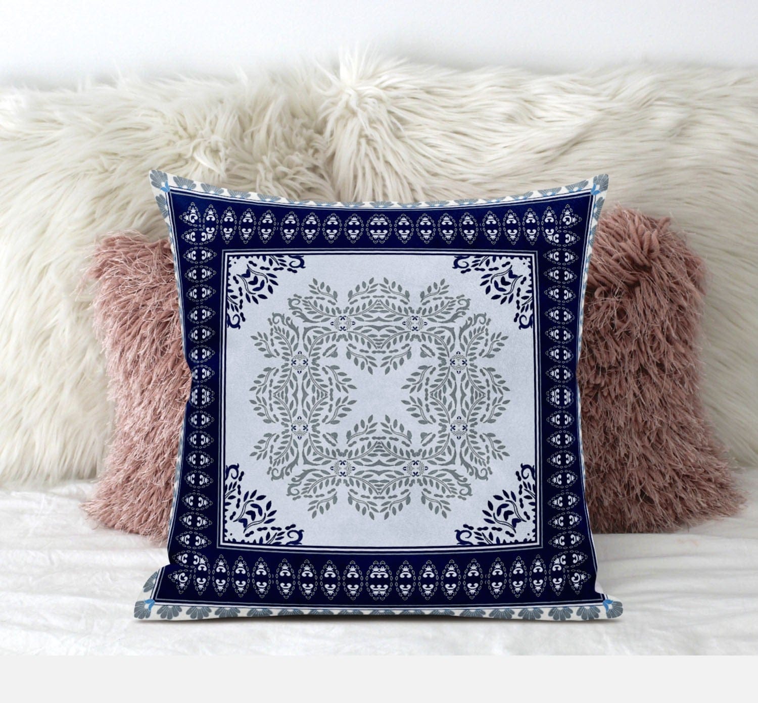 This 18" x 18" dark blue gray geometric blown seam suede throw pillow will add a beautiful decorative accent to your decor. Great to use on its own or mix with other decorations for the perfect look. Decorative pillows are a great way to change up the look and feel of your space easily and quickly. 5" H x 18" W x 18" D