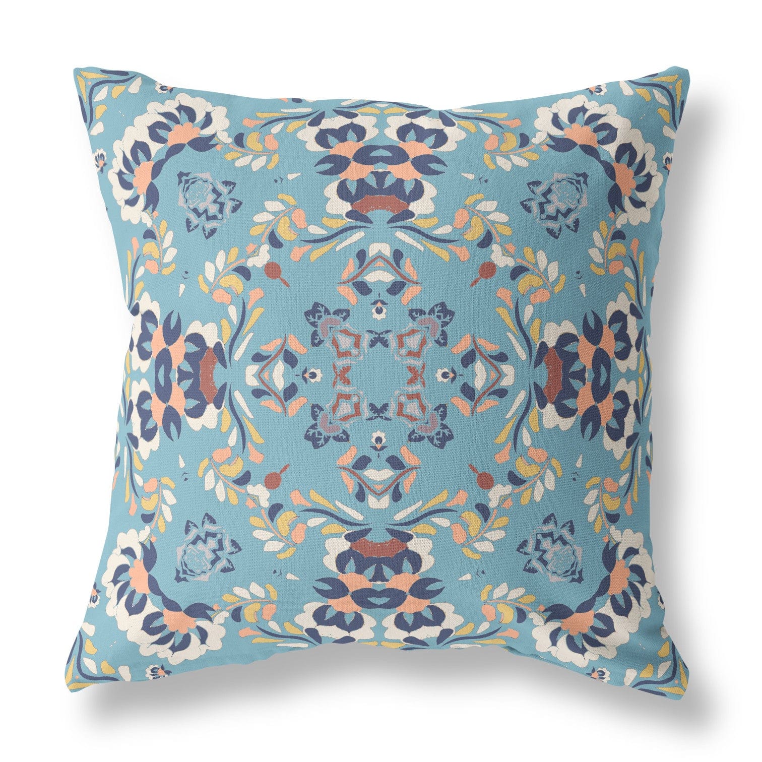 18" X 18" Gray And Blue Zippered Suede Geometric Throw Pillow