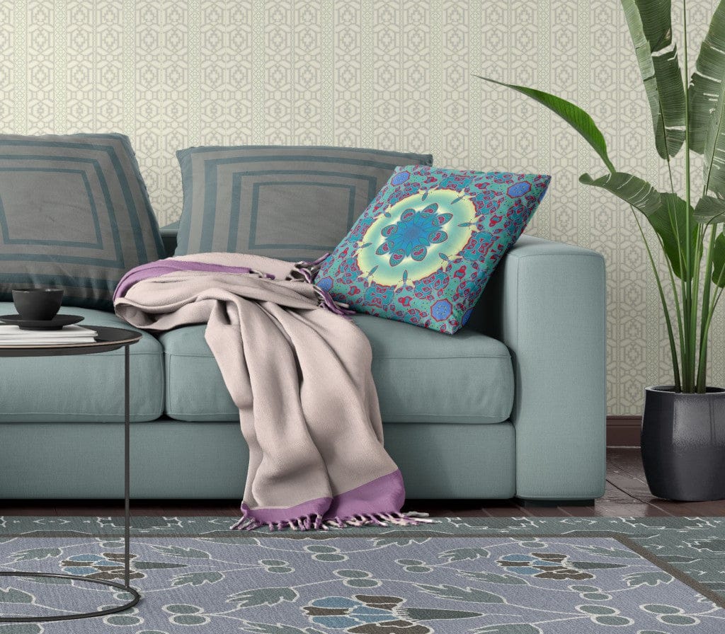 The 18" x 18" green and red geometric blown seam suede throw pillow is the perfect decorative accessory for your home. Great to use on its own or mix with other decorations for the perfect look. A great decorative accessory for your favorite chair, to accent your sofa, or to use as part of your bed ensemble. 5" H x 18" W x 18" D