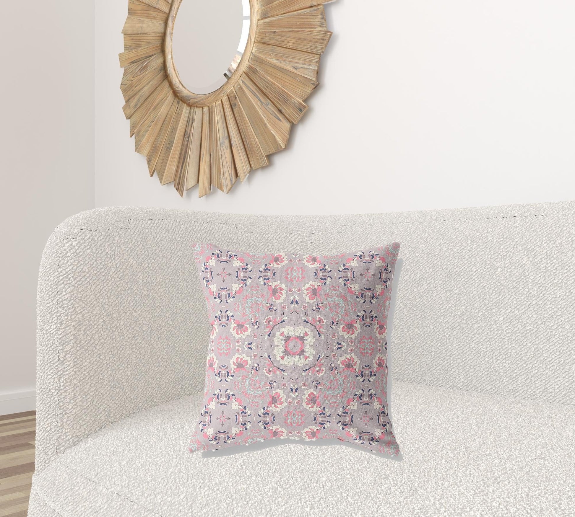 Unique and decorative, this comfortable 18" x 18" muted pink floral blown seam suede throw pillow will leave a lasting impression. Decorative throw pillows not only add color and dimension to your space but can be comfy and supportive when you are lounging and cuddling as well. A great decorative accessory for your favorite chair, to accent your sofa, or to use as part of your bed ensemble. 5" H x 18" W x 18" D