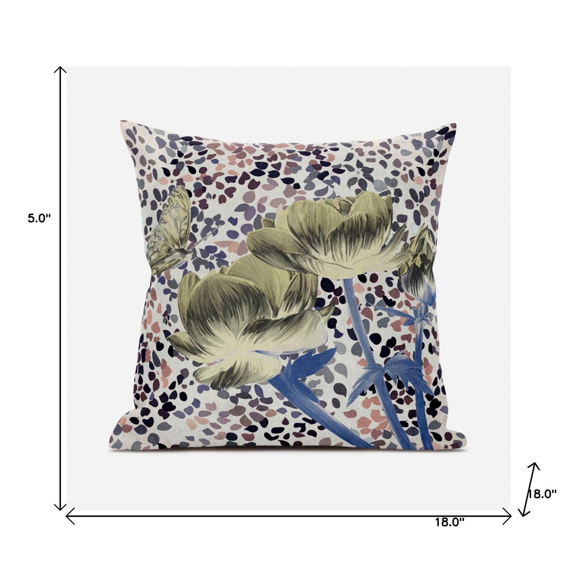 The perfect complement to your sofa, favorite chair, or bed, this 18" x 18" mutedyellow blue peach floral zippered suede throw pillow is a great decorative accent. For anyone that loves to decorate or accent their space with color and texture. A great decorative accessory for your favorite chair, to accent your sofa, or to use as part of your bed ensemble. 5" H x 18" W x 18" D