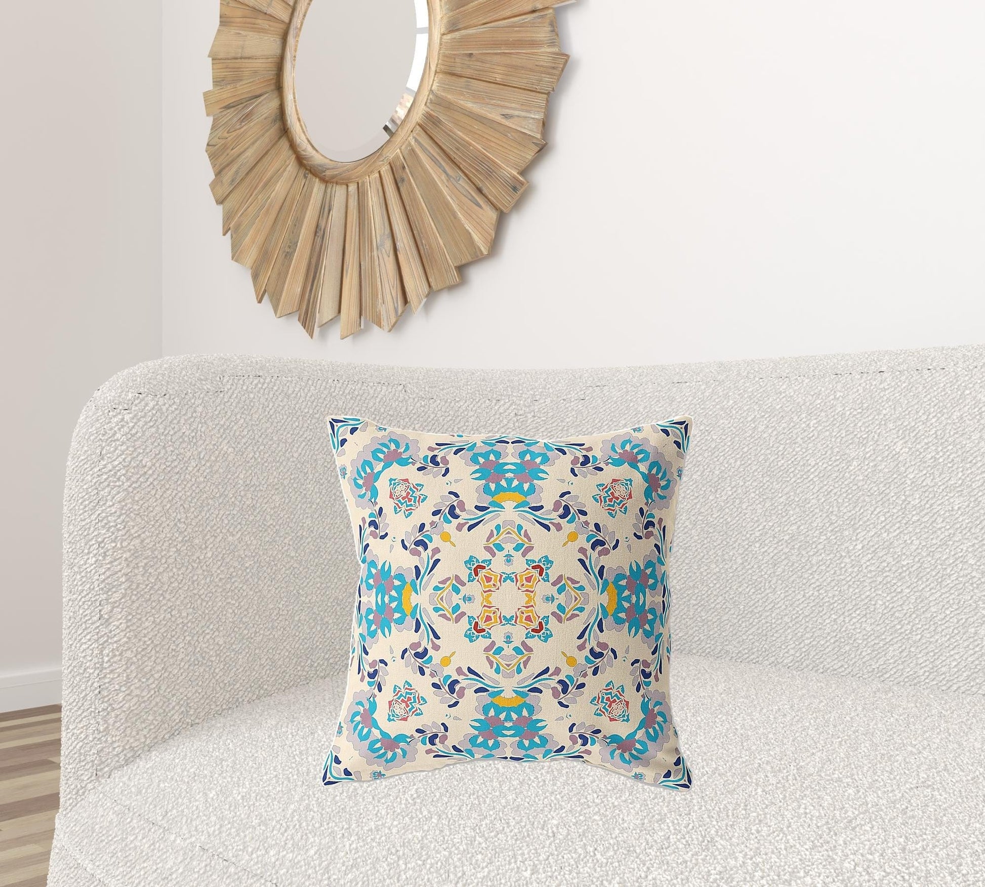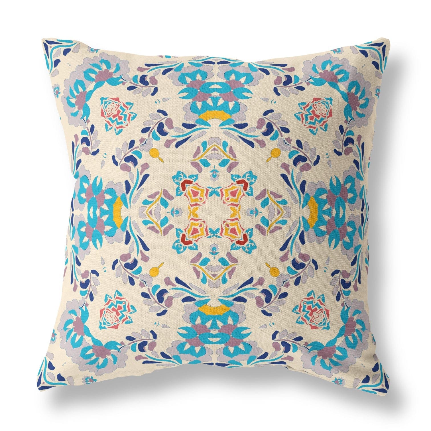 This 18" x 18" off white and blue abstract blown seam suede throw pillow will add a beautiful decorative accent to your decor. Great to use on its own or mix with other decorations for the perfect look. Decorative pillows are a great way to change up the look and feel of your space easily and quickly. 5" H x 18" W x 18" D