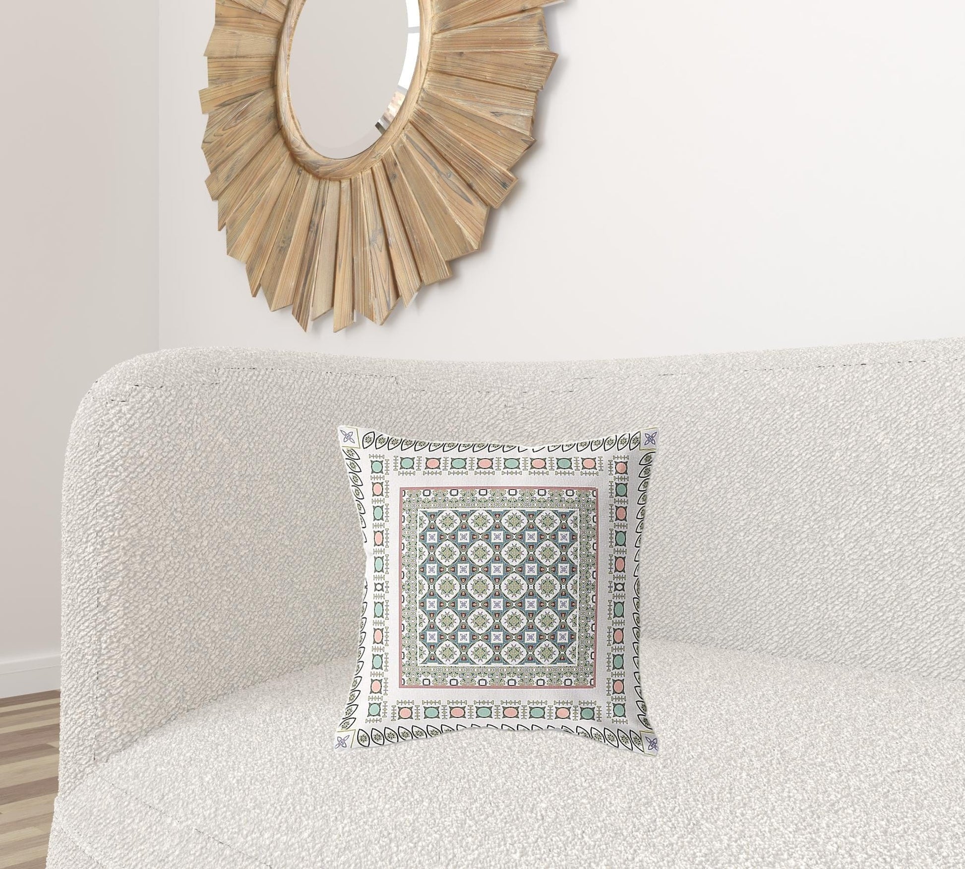 18" X 18" White And Blue Floral Blown Seam Suede Throw Pillow