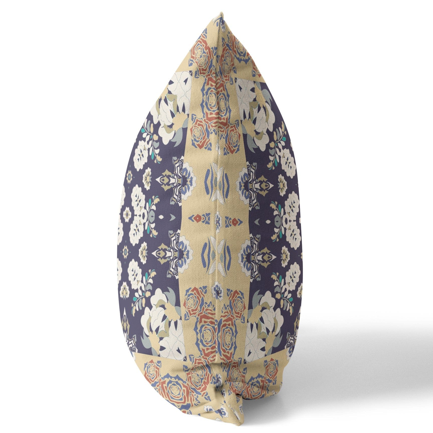 The 18" x 18" yellow and navy floral blown seam suede throw pillow is the perfect decorative accessory for your home. Great to use on its own or mix with other decorations for the perfect look. A great decorative accessory for your favorite chair, to accent your sofa, or to use as part of your bed ensemble. 5" H x 18" W x 18" D