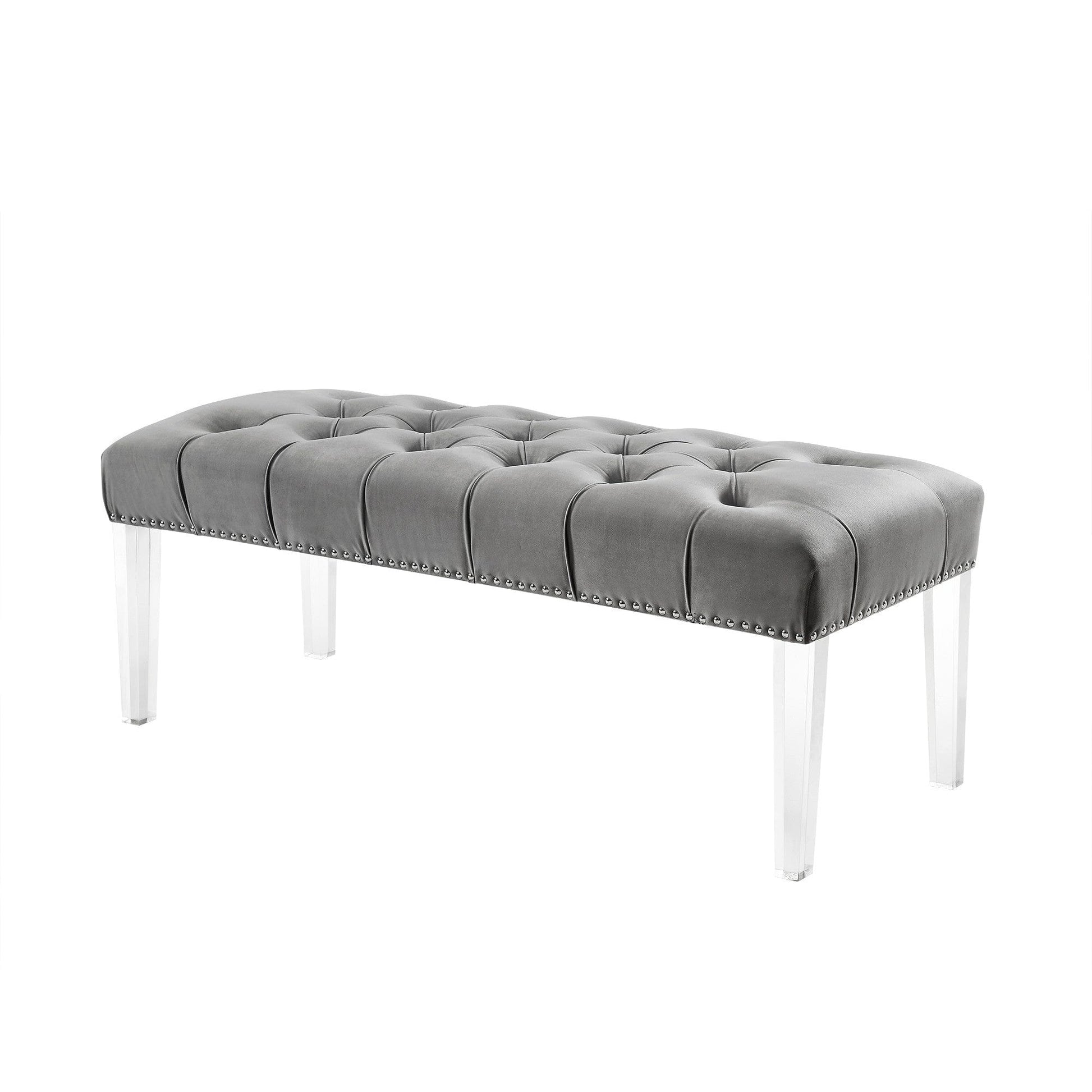 19" Grey Tufted Velvet and Acrylic Upholstered Bench
