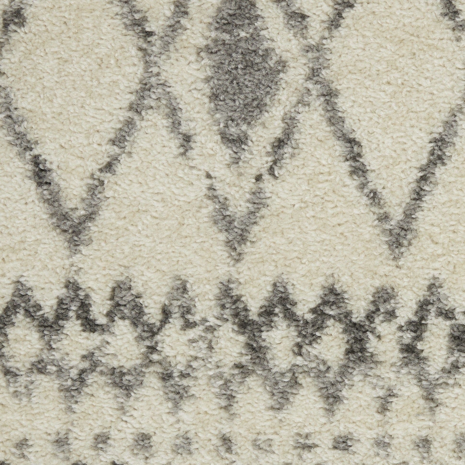 Expressing a subdued Persian elegance in a neutral color palette, this Ivory and Gray Berber Pattern Runner Rug will add a subtle yet delightful Bohemian beauty into your living space. The array of trout gray geometric diamonds and lattice patterns adorn the ivory base emanating a Scandinavian vibe into any casual setting. Flaunting the finesse of Turkish craftsmanship, this rug is made of durable polypropylene with a power-loomed construction that ensures easy clean and stain resistance for indoor areas with medium foot traffic. The soft, low-pile surface texture feels luxurious on the touch while the serged edges add to a finished look. Made to elevate any modern or transitional space, this versatile runner rug is one-of-a-kind to add a sense of warmth to your place. 2'2" x 10'