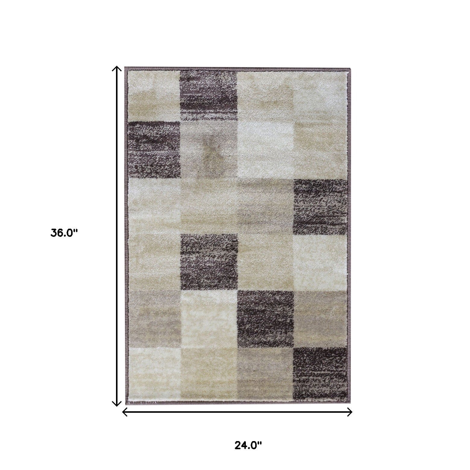 2' X 3' Beige Geometric Power Loom Stain Resistant Area Rug