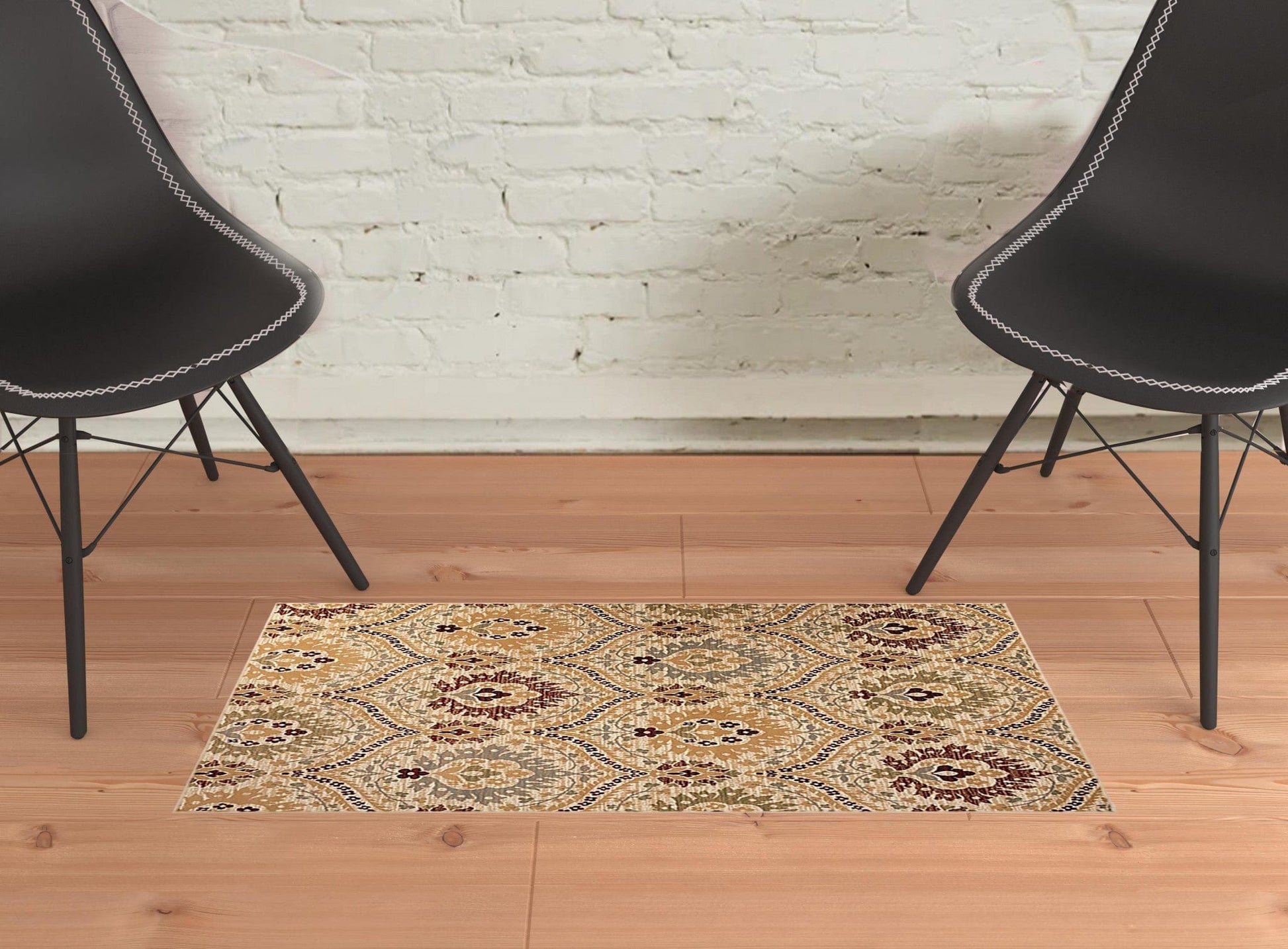 2' X 3' Camel Gray And Rust Floral Stain Resistant Area Rug