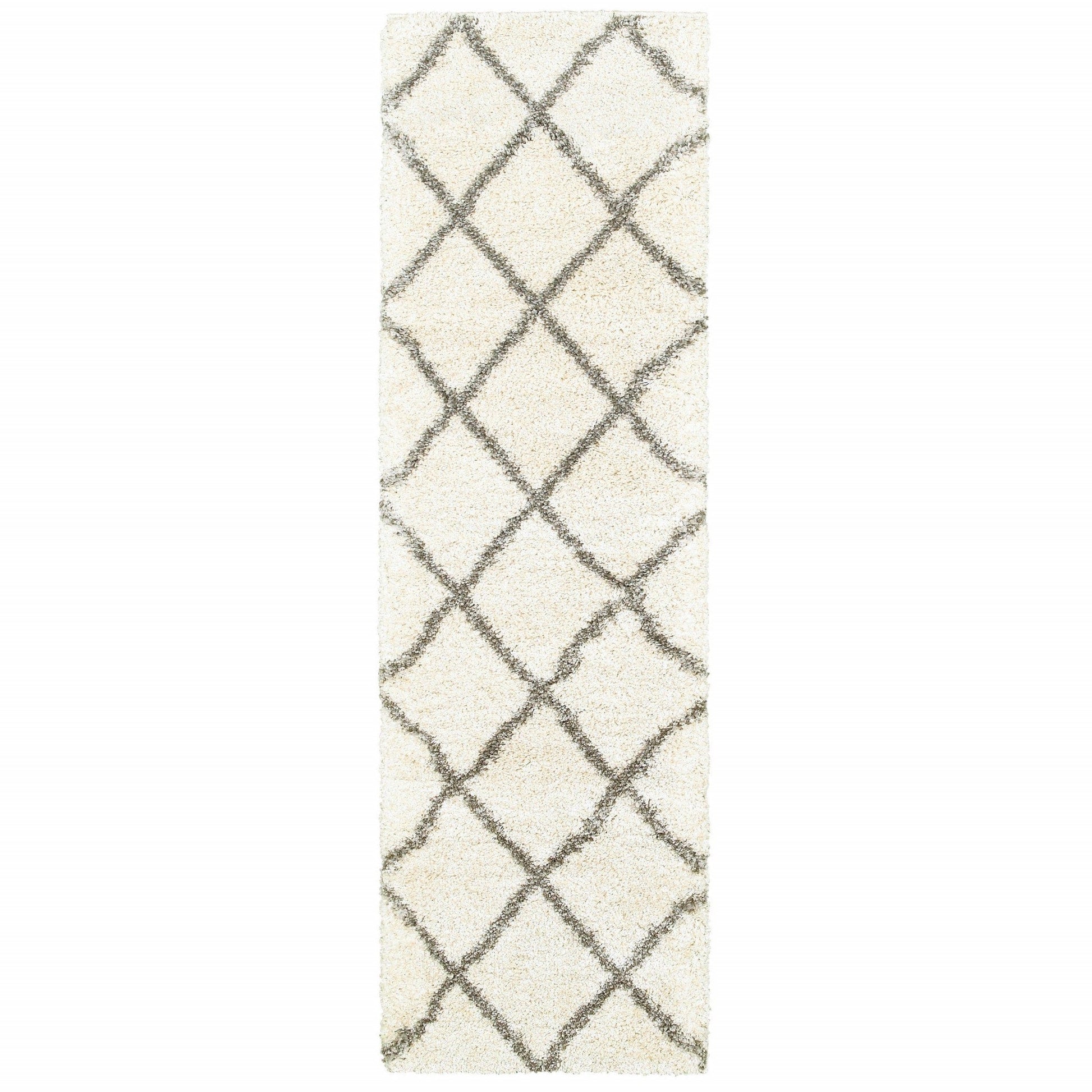 2’ X 3’ Ivory And Gray Geometric Lattice Scatter Rug
