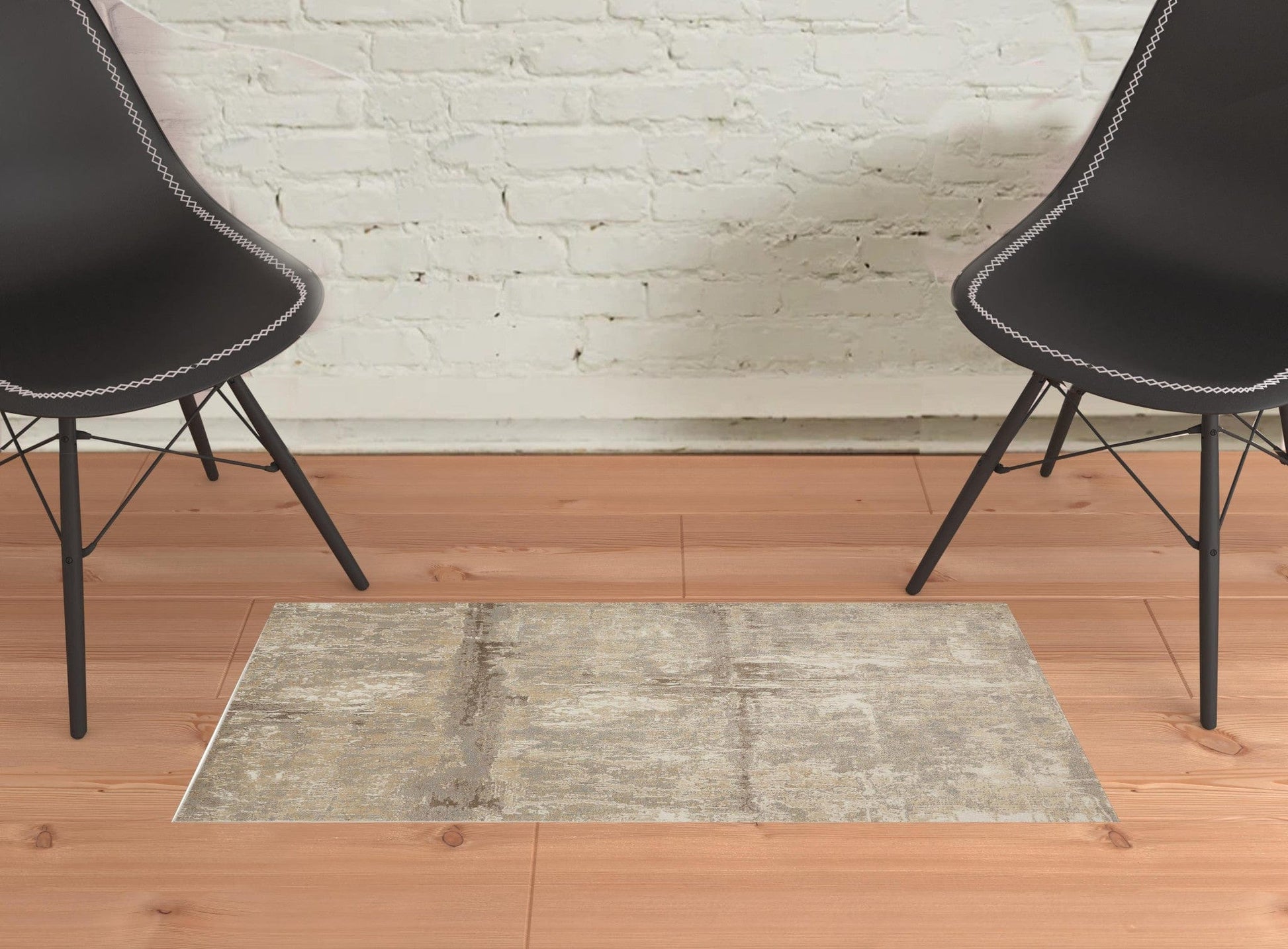 2' X 3' Tan Ivory And Brown Abstract Area Rug