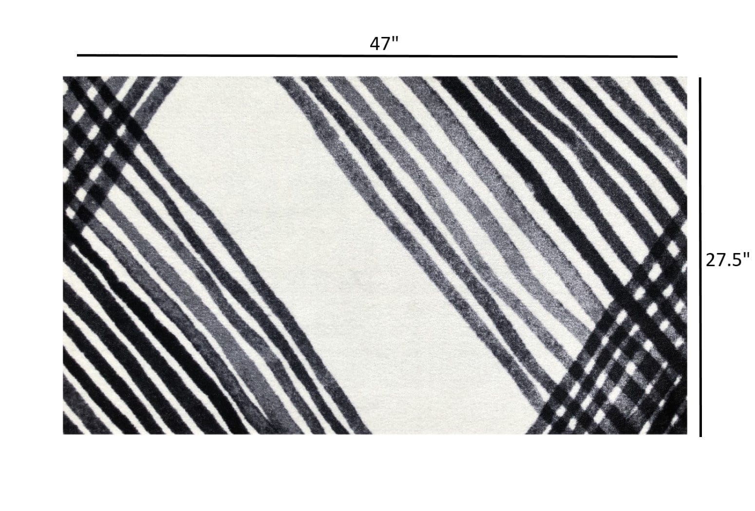 This low profile Black and Gray Abstract Arrow Floor Mat is a game changer. A fade resistant slightly distressed modern abstract arrow design with shades of black, gray, ivory, and white that is a fashion forward look for a mat that is super sturdy and can easily be thrown into the washer and dryer to clean. The premier formula rubber backing used makes this nylon rug slip resistantr with no need for an additional pad, and the backing will hold up during the wash and dry! The low profile means it easily fits under doors. Combine fashion and style with real life functionality with this great area rug/door mat. 27.5" x 47" x .3"