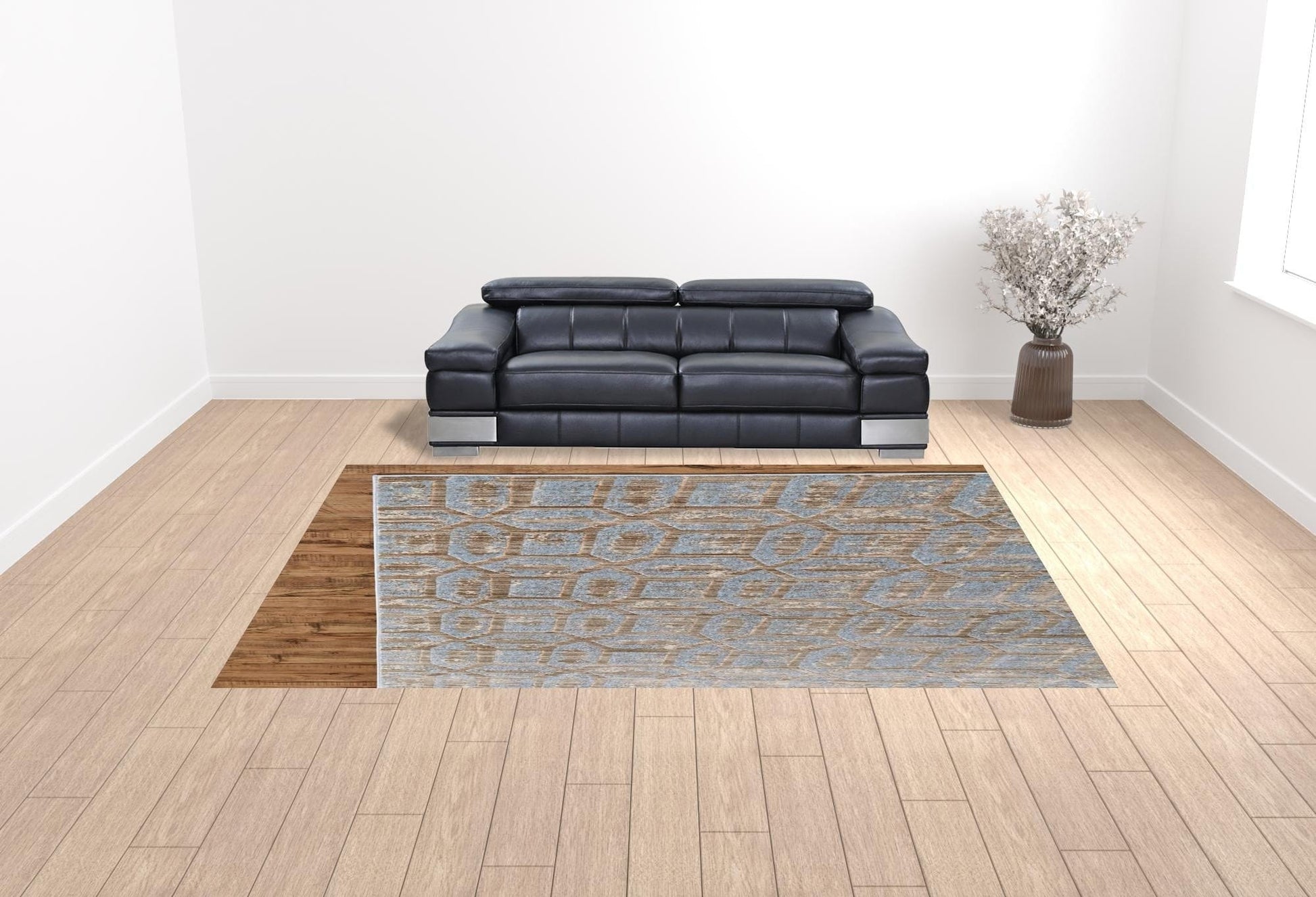 2' X 4' Blue Taupe And Ivory Floral Distressed Stain Resistant Area Rug