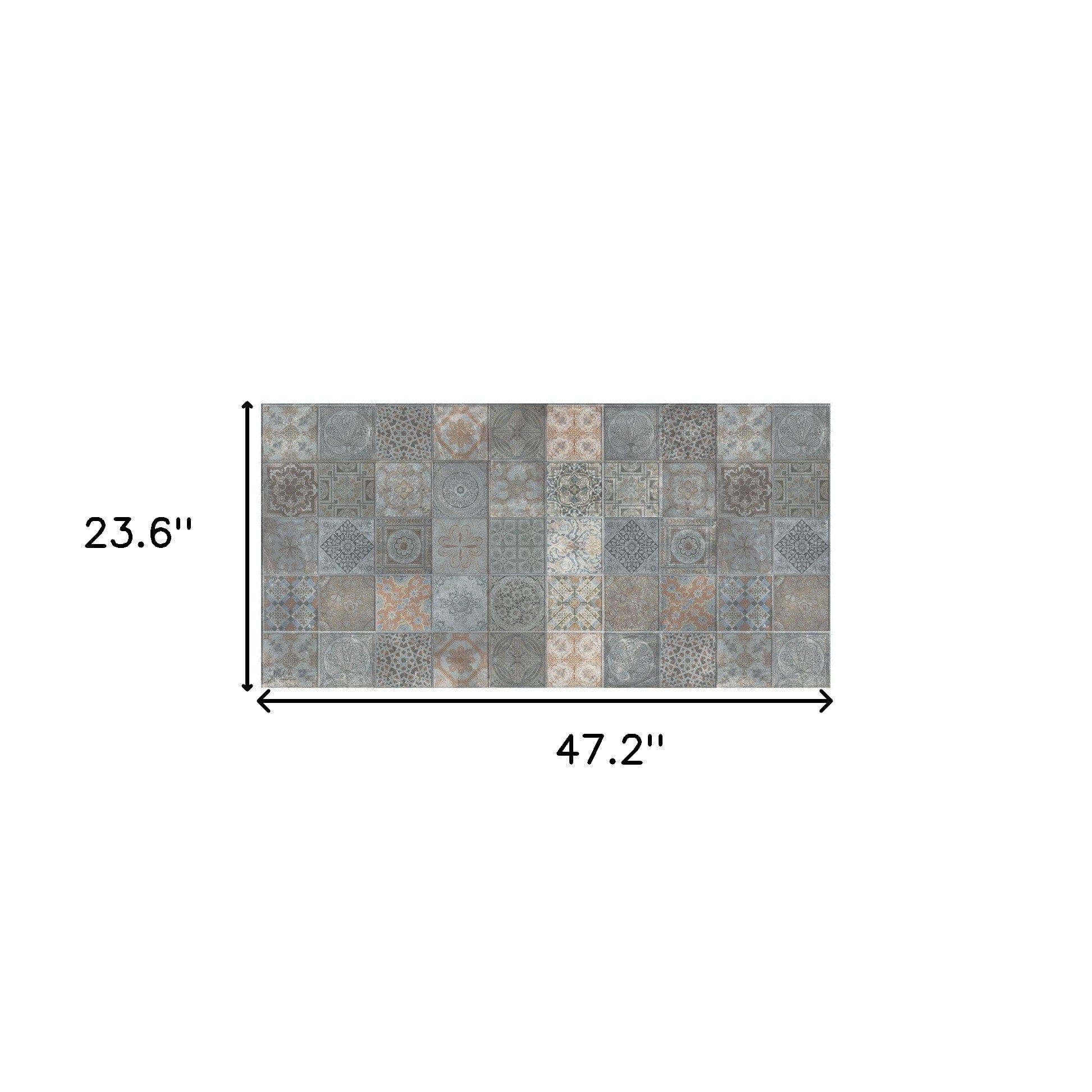 Add great coloration and comfortable texture to your space with this 2' x 4 brown and gray mosaic tile printed vinyl area rug with UV protection. This rectangle shaped rug features an authentic looking vintage mosaic tile print in brown and gray to give it visual interest. A classic shape marries with good looking design for your space Ideal for spaces with kids and pets, this rug is stain resistant to help repel stains and spilled liquids. This vinyl mat is casual, easy to clean, and is built to last. This distressed look tile design printed floor mat will help to give warmth and sense of home to your space. 0.08" H x 23.6" W x 47.2" D
