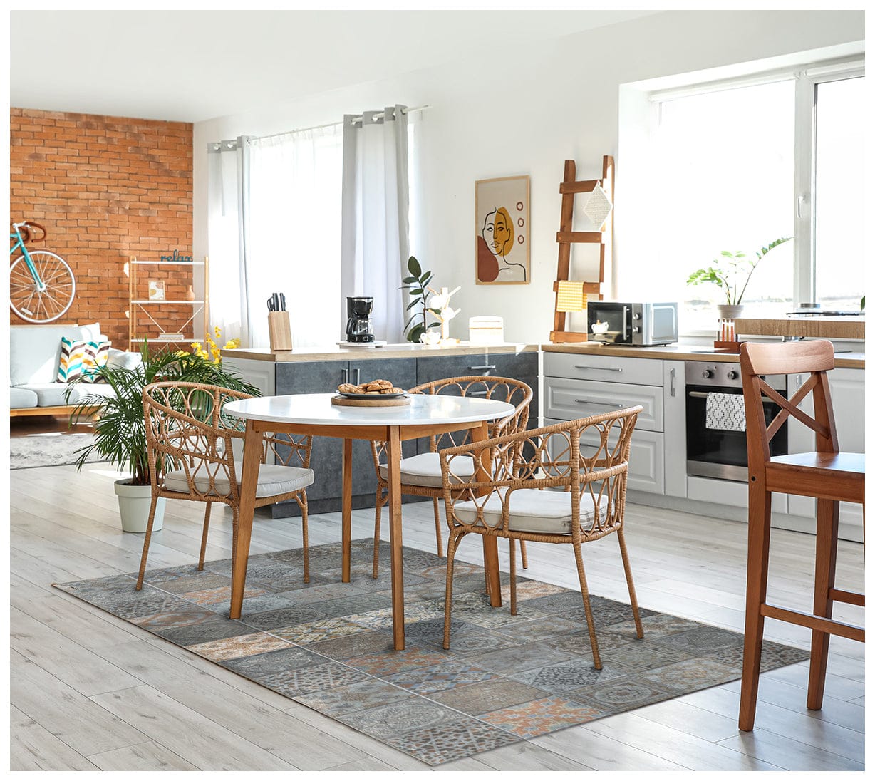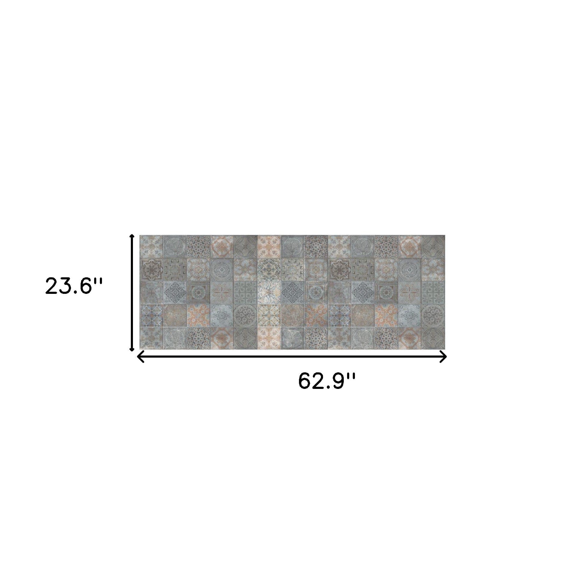 Add great coloration and comfortable texture to your space with this 2' x 5' brown and gray mosaic tile printed vinyl area rug with UV protection. This rectangle shaped rug features an authentic looking vintage mosaic tile print in brown and gray to give it visual interest. A classic shape marries with good looking design for your space Ideal for spaces with kids and pets, this rug is stain resistant to help repel stains and spilled liquids. This vinyl mat is casual, easy to clean, and is built to last. This distressed look tile design printed floor mat will help to give warmth and sense of home to your space. 0.08" H x 23.6" W x 62.9" D