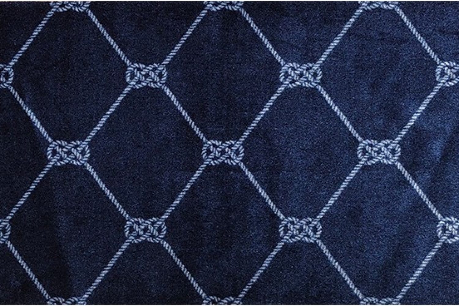 This low profile Navy Nautical Knots Washable Floor Mat Runner is a game changer. A fade resistant slightly distressed nautical rope design in a deep indigo blue that is super sturdy and can easily be thrown into the washer and dryer to clean.The premier formula rubber backing used makes this nylon rug slip resistantr with no need for an additional pad, and the backing will hold up during the wash and dry! The low profile means it easily fits under doors. Combine fashion and style with real life functionality with this great area rug/door mat. 27.5" x 75" x .3"