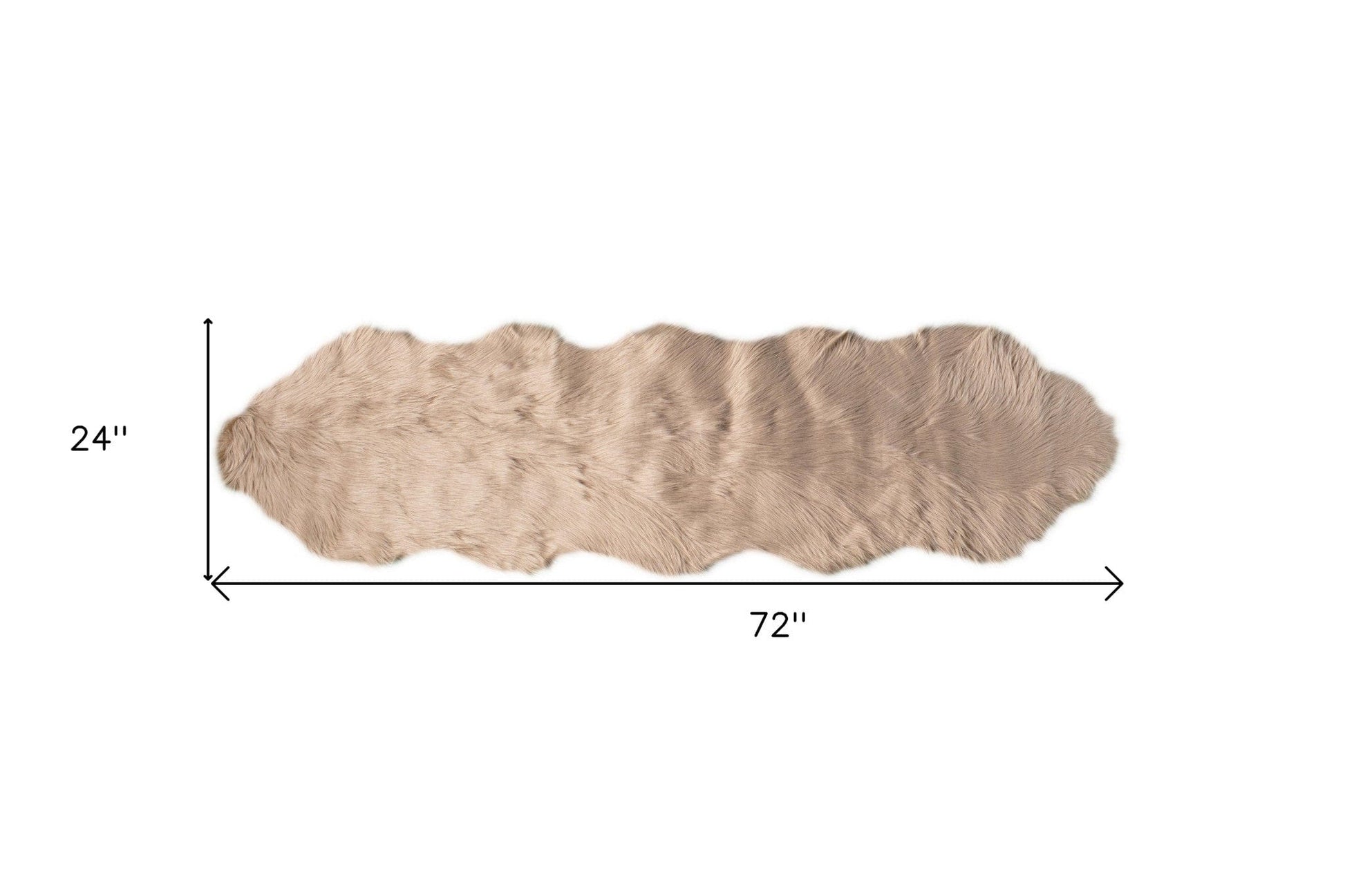 2' X 6' Taupe Faux Fur Washable Non Skid Area Rug