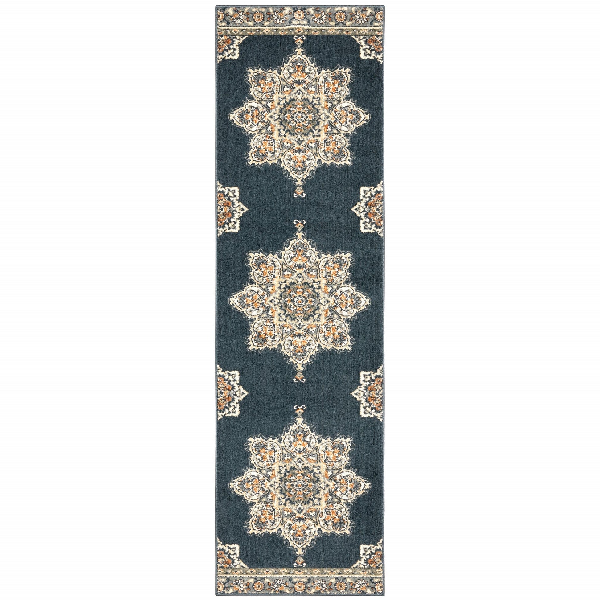 2’ X 7’ Blue And Beige Floral Medallion Indoor Runner Rug