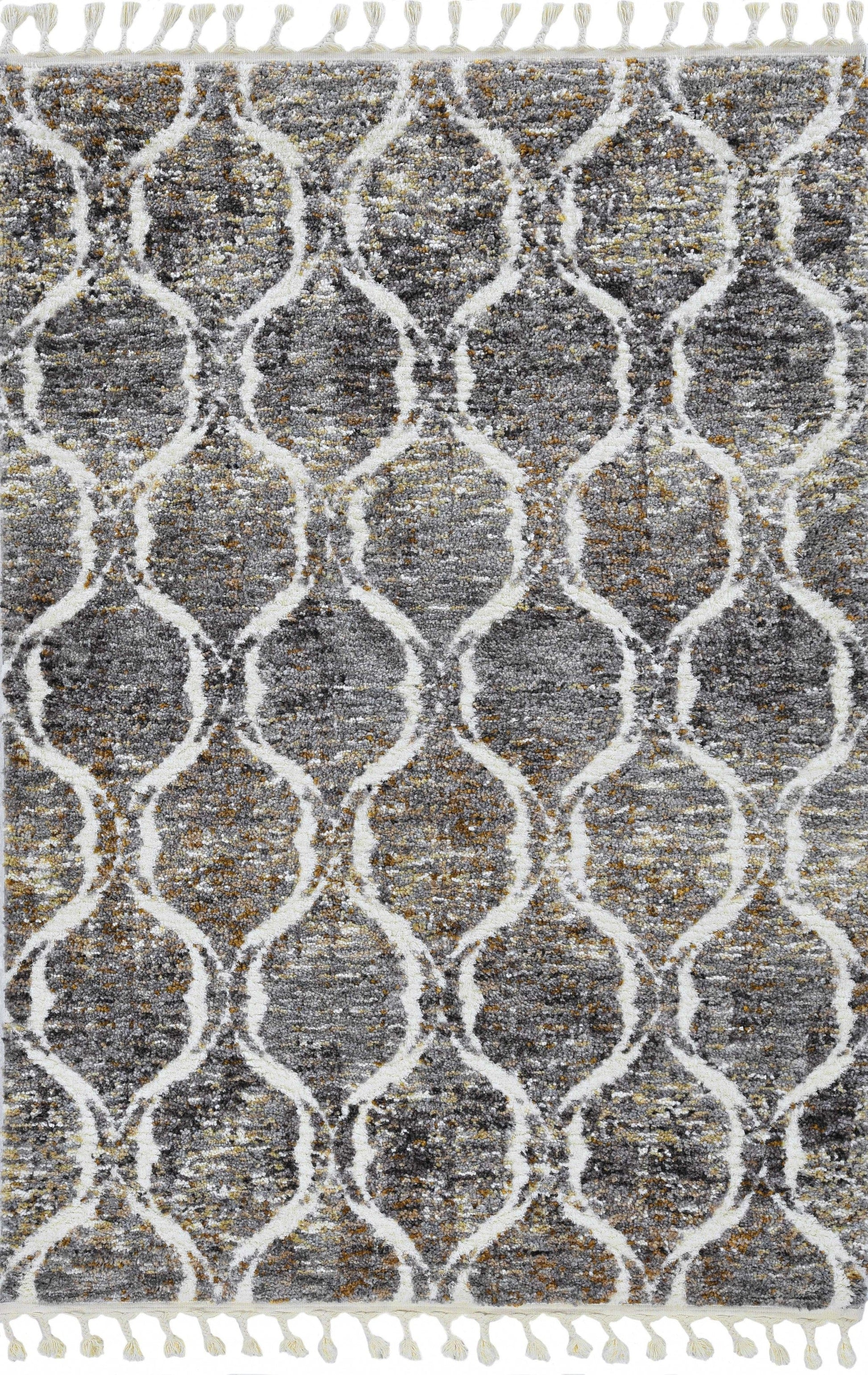 2' X 7' Grey Or Sand Wavy Line Runner Rug With Fringe