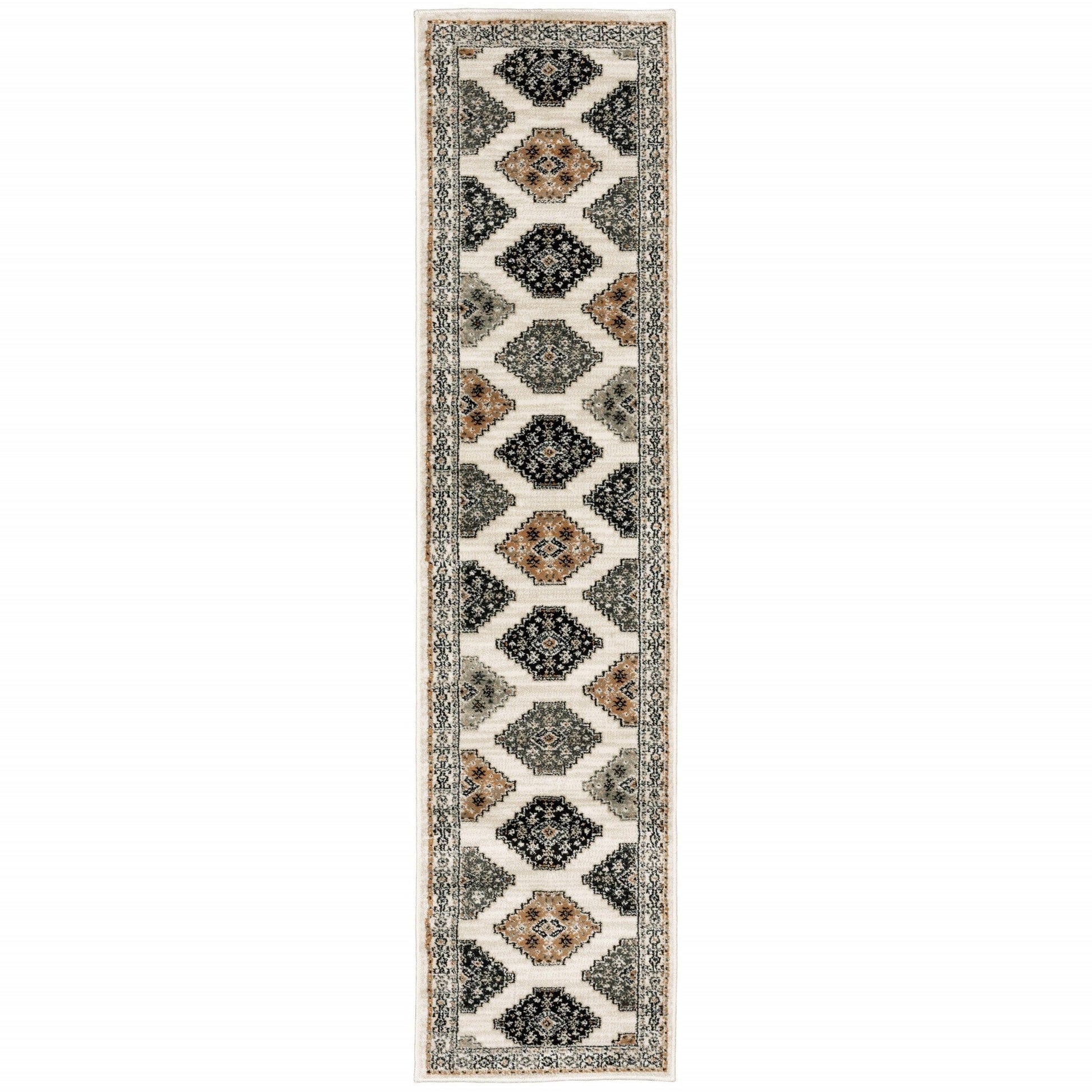 2’ X 8’ Abstract Ivory And Gray Geometric Indoor Runner Rug