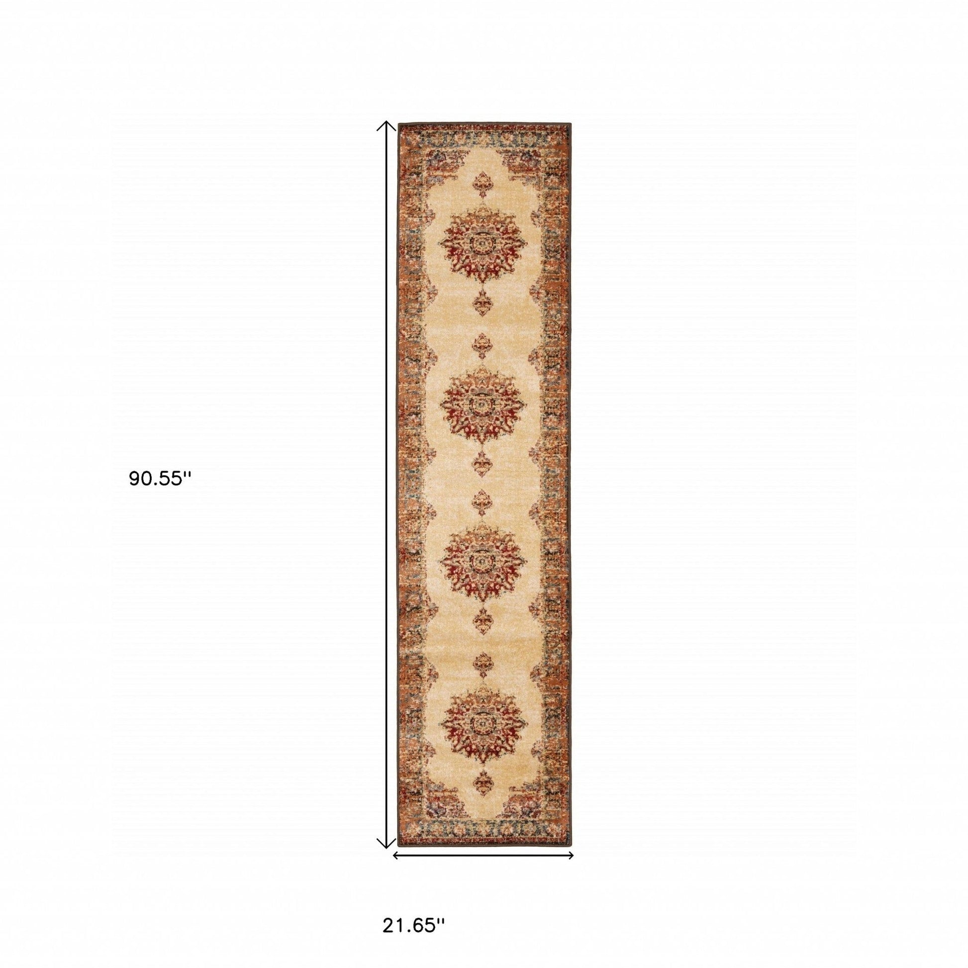 2’ X 8’ Gold And Orage Floral Medallionrunner Rug