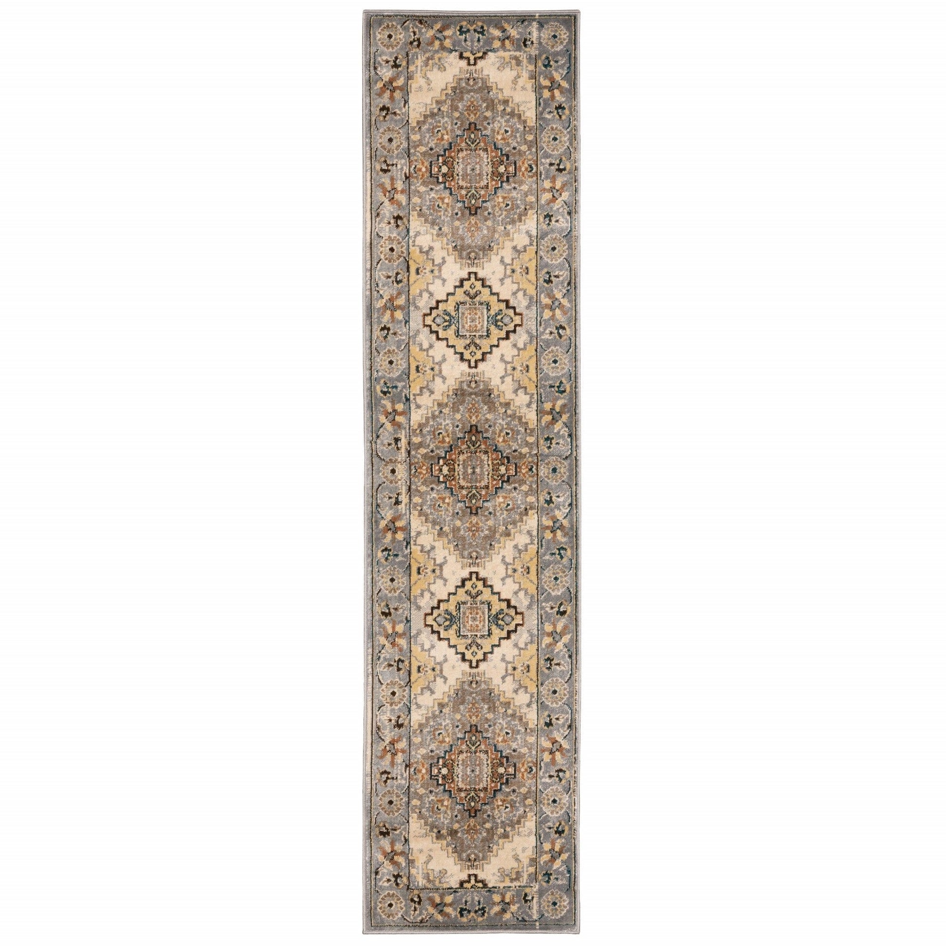 2’ X 8’ Gray And Beige Aztec Pattern Runner Rug