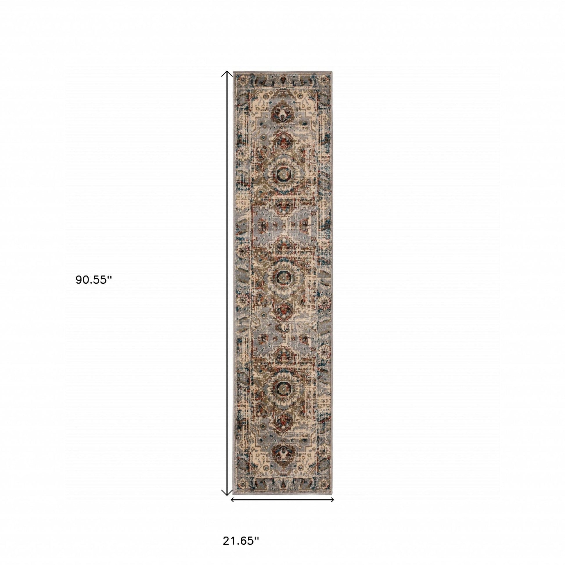2’ X 8’ Gray And Rust Distressed Medallion Runner Rug
