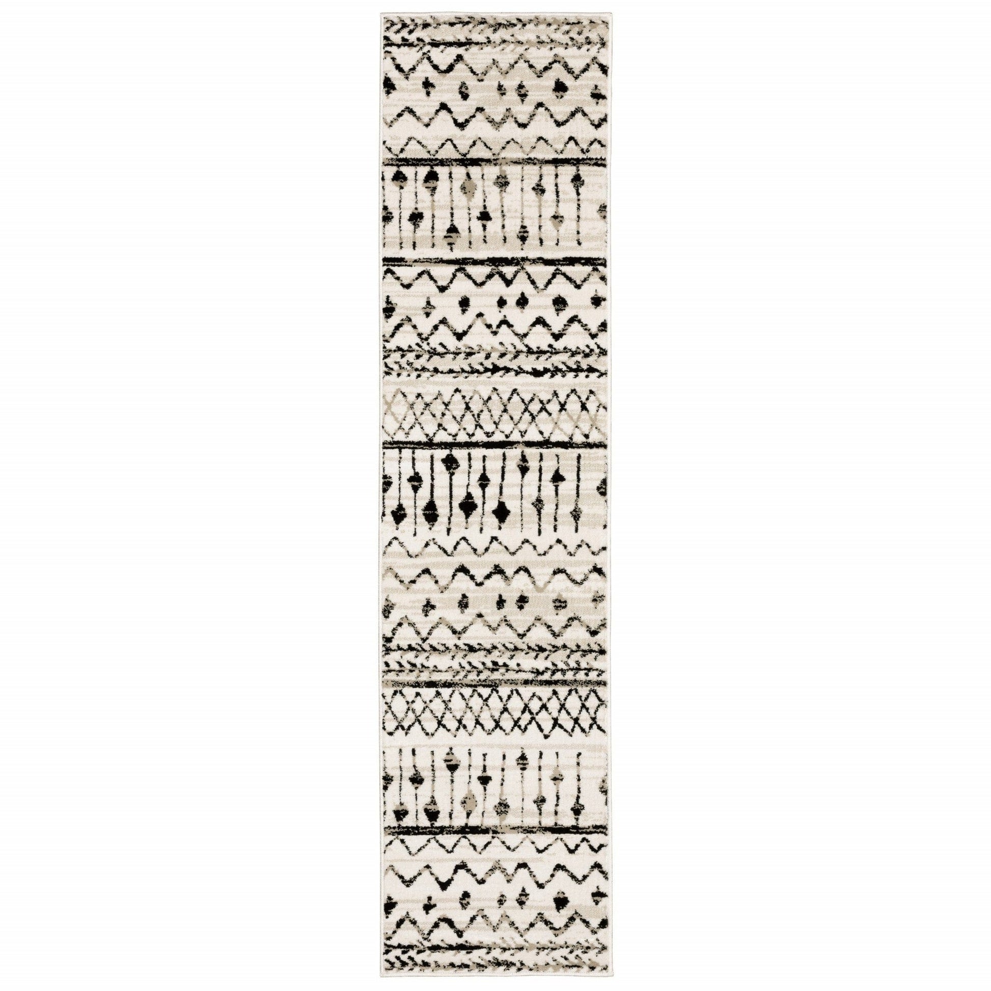 2’ X 8’ Ivory And Black Eclectic Patterns Indoor Runner Rug