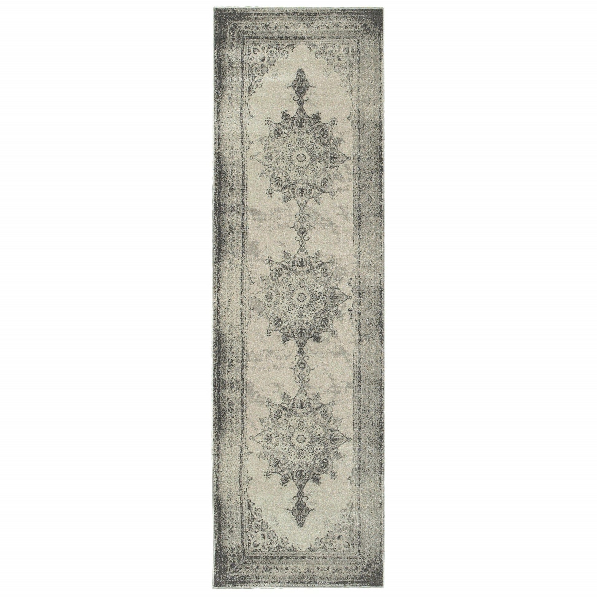 2’X8’ Ivory And Gray Pale Medallion Runner Rug