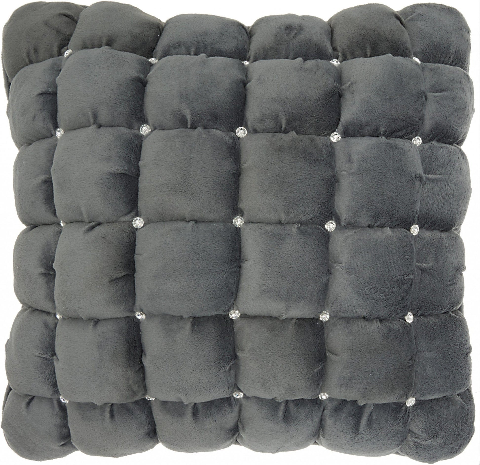 Add some luxuriously soft texture and great looks to your space with this Dark Gray with Bling Quilted Velvet Throw Pillow. In a glamorous fashion, super soft velvet with large stitched quilts are accented by sprakly faux crystals. Add this glam square decorative pillow to your favorite chair, sofa, or bed for a chic, cozy, and modern accent. 5" x 20" x 20".