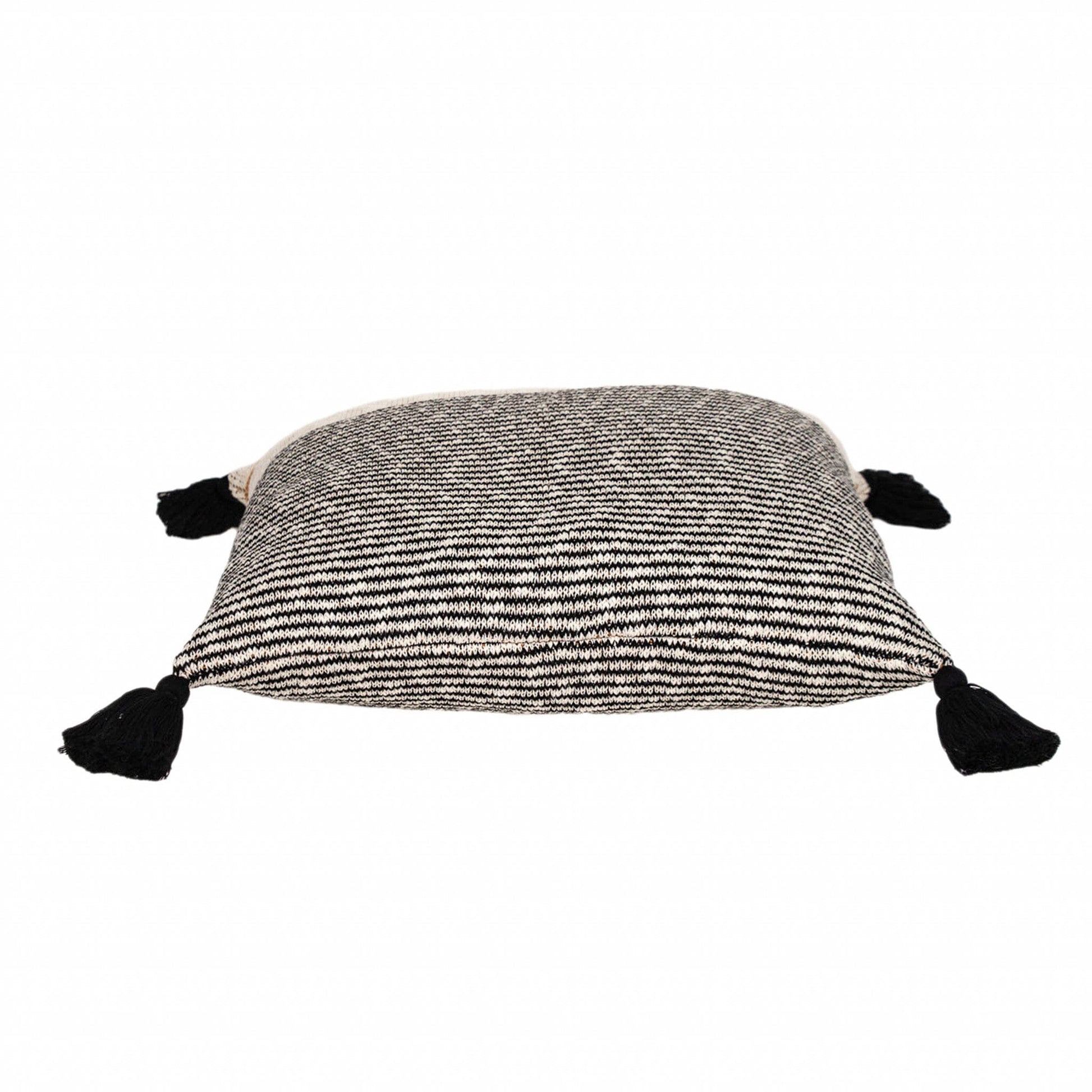 This 20" x 20" beige stripe pattern square accent throw pillow with tassel will add a beautiful decorative accent to your decor. This off white hued piece represents quality construction, expertly made from high grade 100% cotton. Great to use on its own or mix with other decorations for the perfect look. A great decorative accessory for your favorite chair, to accent your sofa, or to use as part of your bed ensemble. 20" H x 20" W x 4" D