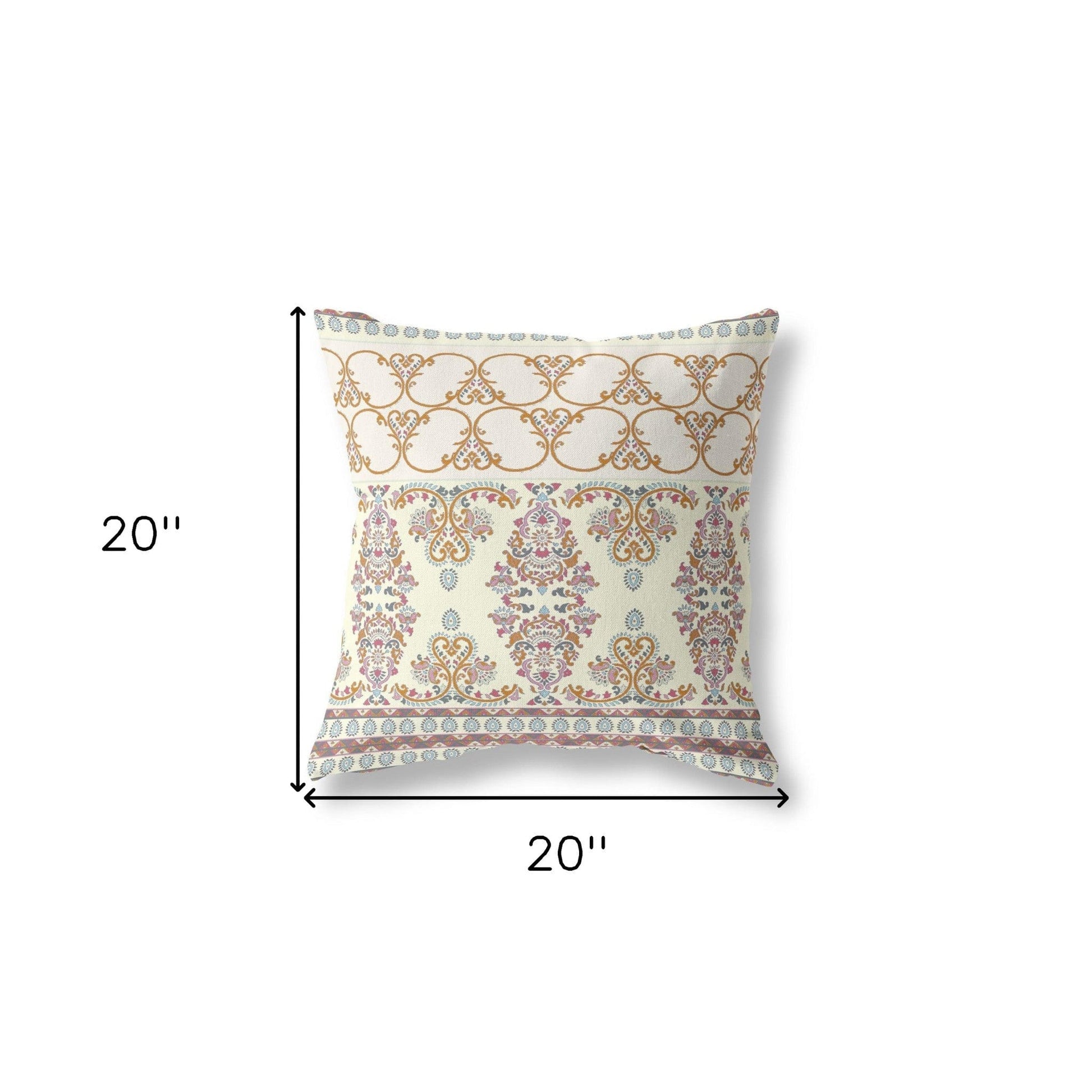 20" X 20" Off White And Orange Stencil Zippered Suede Throw Pillow