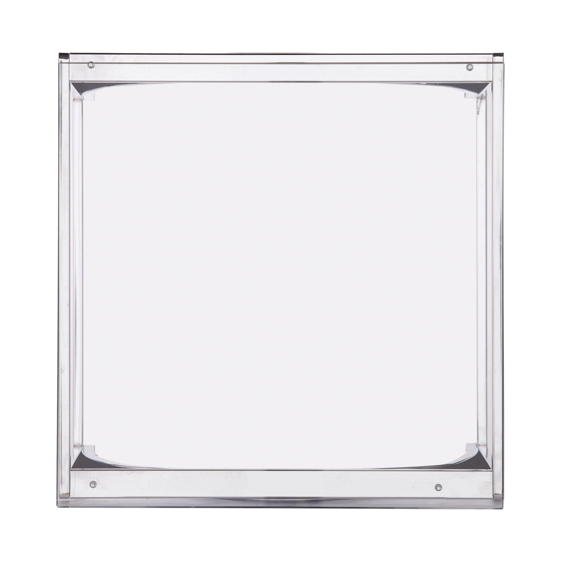Optimize your space and add some charm to your room with the 22" chrome glass and iron square end table. This marvelous end or side table is made from high quality metal. The chrome coloration runs throughout this good-looking iron and glass table. A great accent on either side of the sofa or bed, this adorable end or side table is just what you need. You can also use it as an entryway table to hold your keys. 22" H x 19" W x 19" D