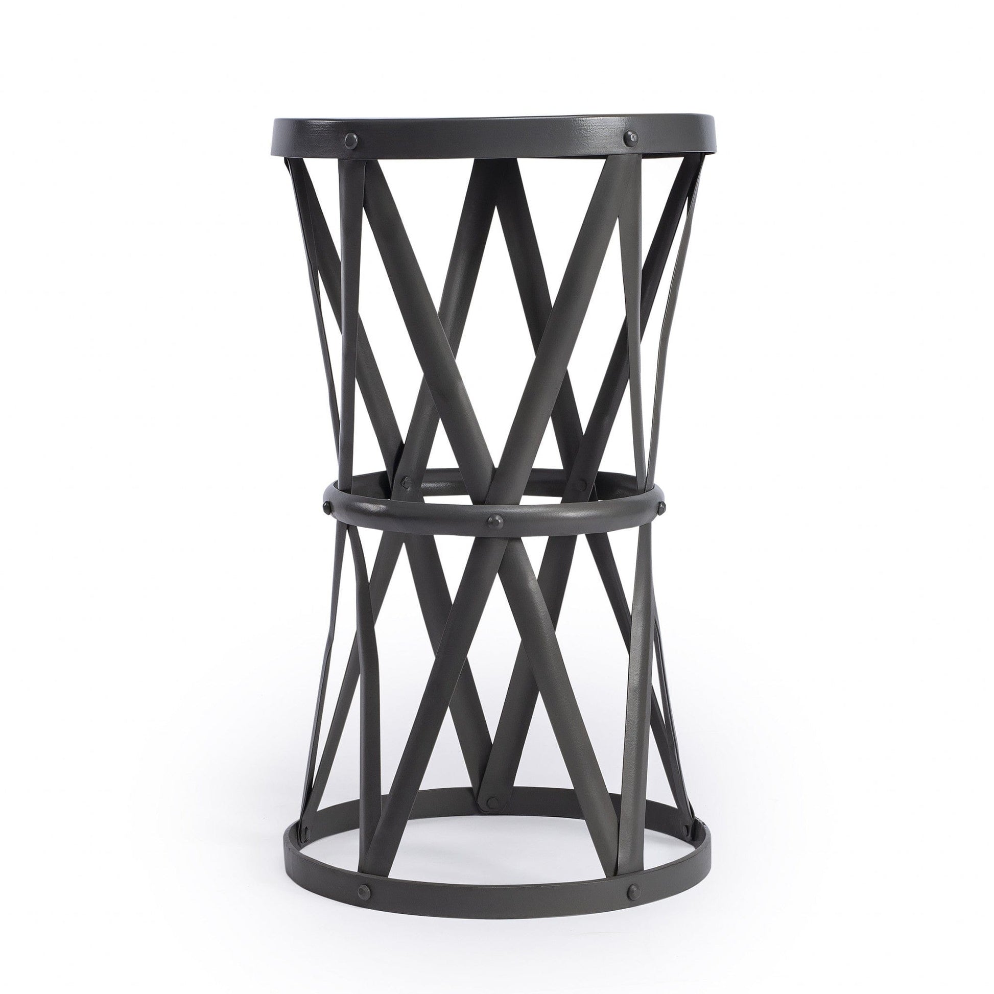 Show off your exquisite taste with this 22" dark gray iron hourglass base round top end table. Made of iron, the gray coloration throughout gives this piece an updated and refreshing look. Complete with a purposefully distressed finish, this table has an aged, vintage, and rustic feel. A great accent on either side of the sofa or bed, this adorable end or side table is just what you need. You can match it with other pieces to get the ideal look for your place. 22" H x 13" W x 13" D