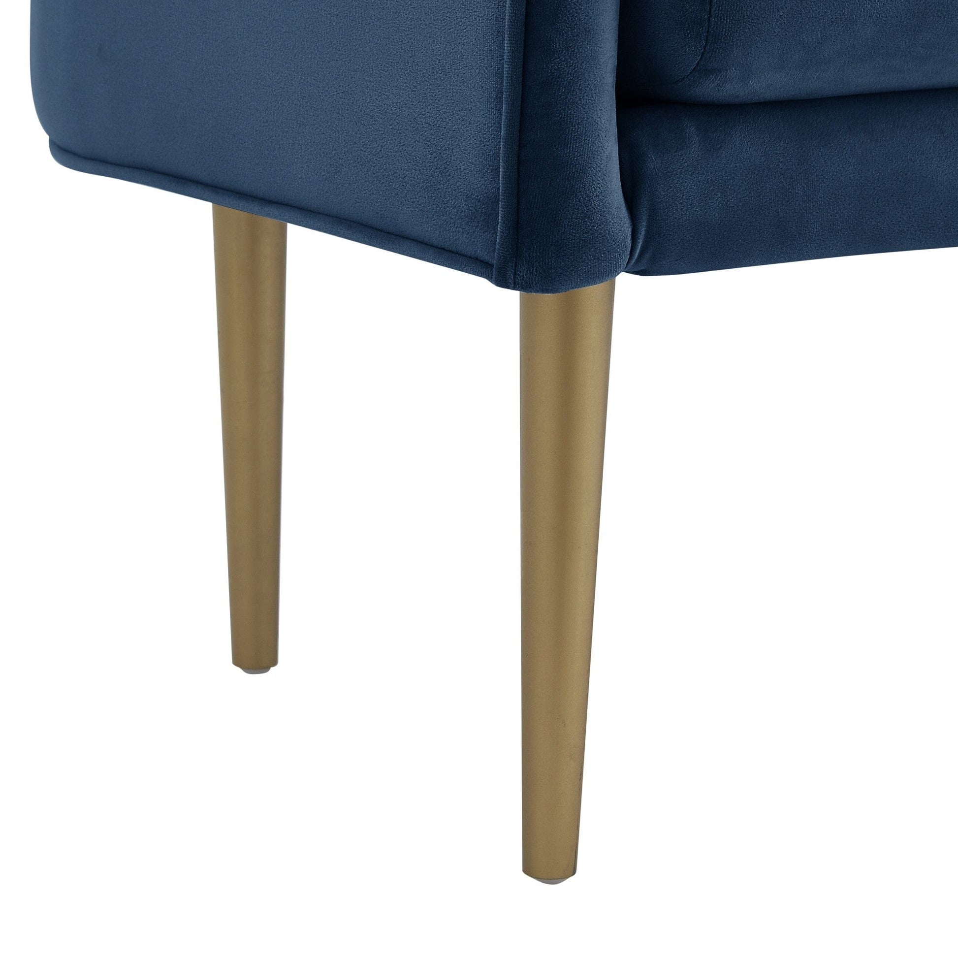 22" Navy Velvet and Gold Upholstered Entryway Bench