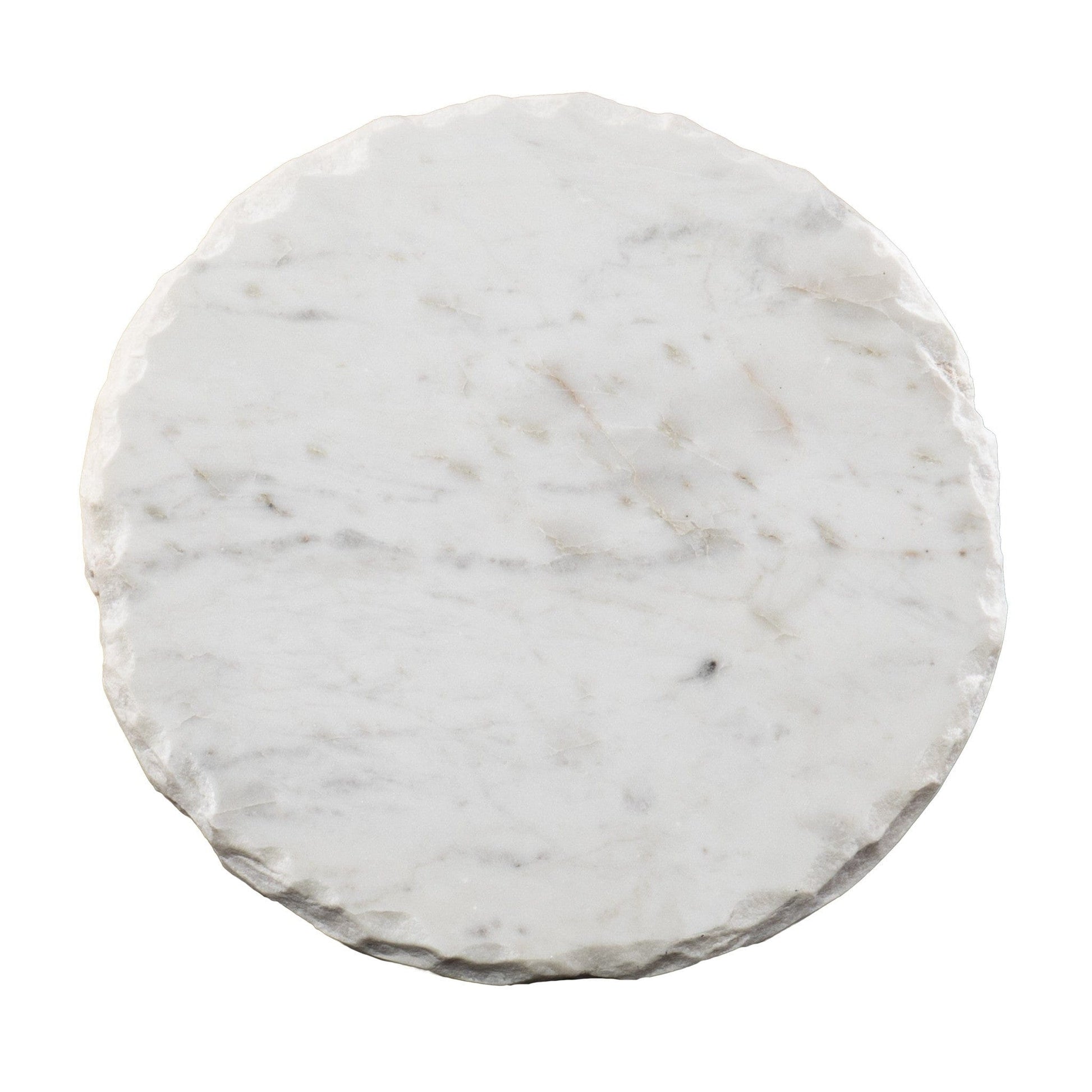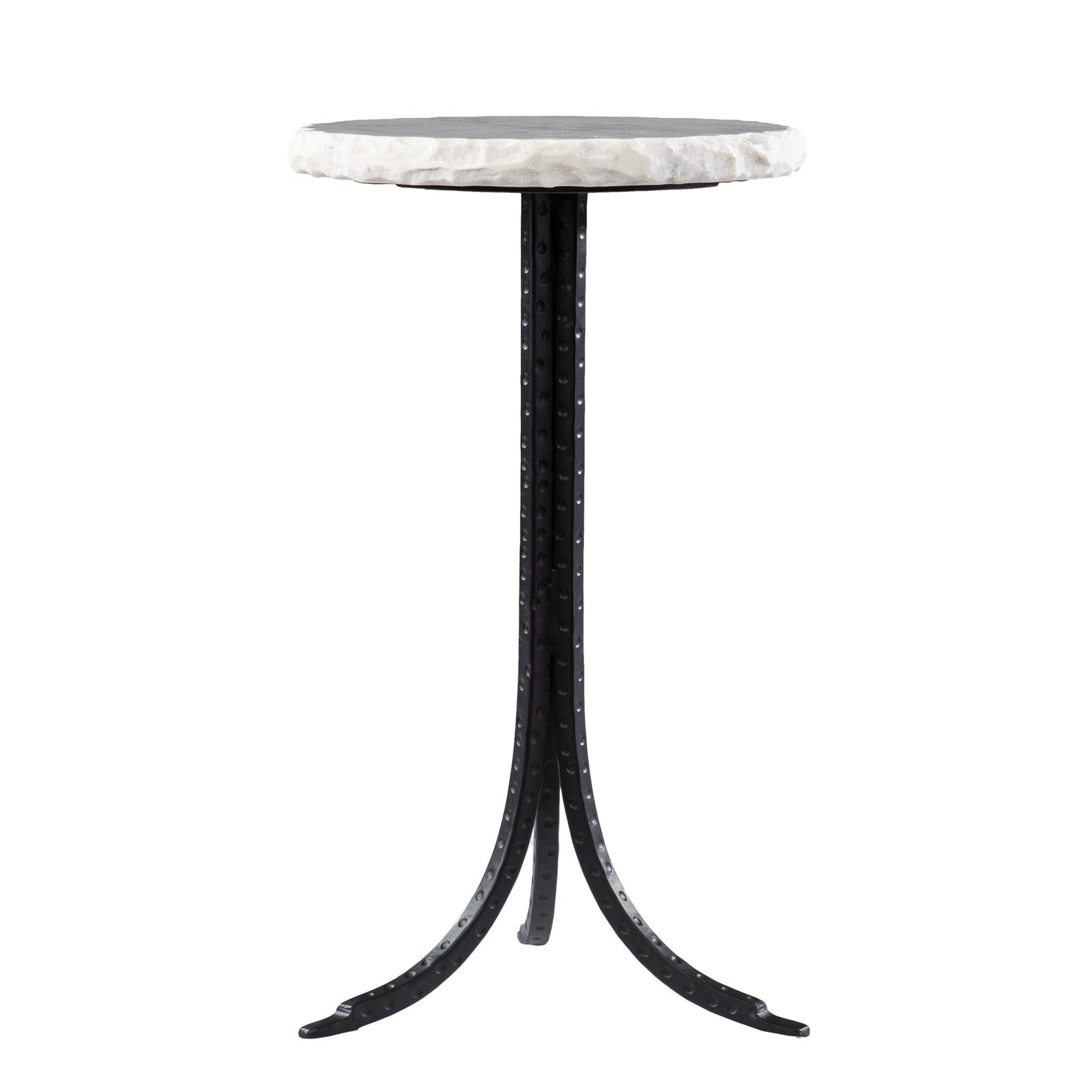Optimize your space and add some charm to your room with the 23" black and white marble and metal round end table. It is crafted out of marble to create an inspiring atmosphere in any room. A black metal frame is finished off with a white marble top that is the epitomy of quality construction and design. A great accent on either side of the sofa or bed, this adorable end or side table is just what you need. You can also use it as an entryway table to hold your keys. 22.75" H x 13.25" W x 13.25" D