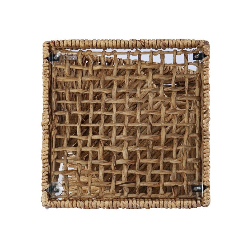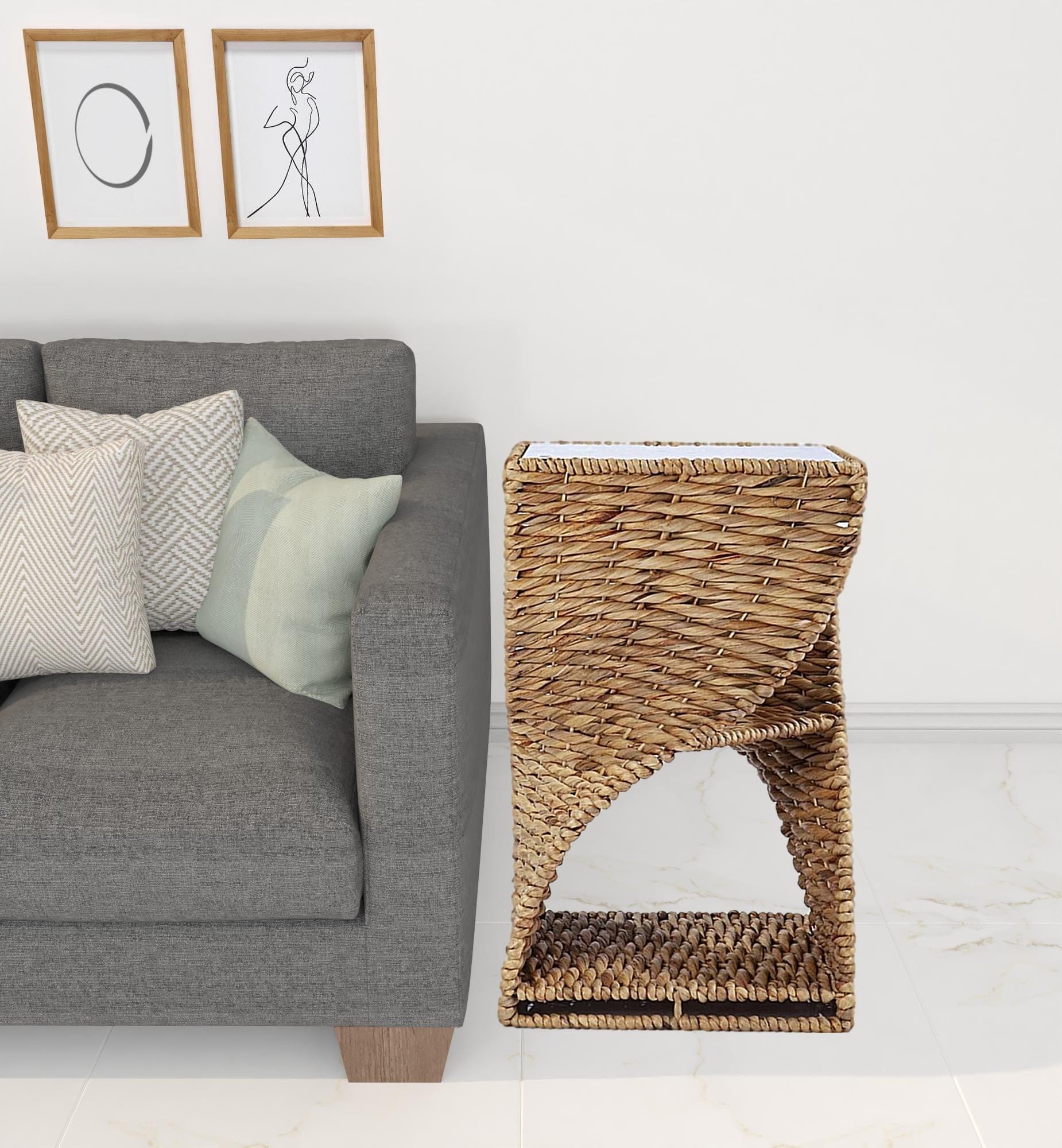 Optimize your space and add some charm to your room with the 23" brown and natural rattan square end table with two shelves. A brown rattan/wicker swirling frame is finished off with a natural rattan top with glass that is the epitome of quality construction and design. There are two shelves that will help to keep clutter at bay. Side tables are a great way to flank your sofa, use as an accent next to your favorite chair, or can even be used bedside. You can also use it as an entryway table to hold your keys. 22.75" H x 14.25" W x 14.25" D