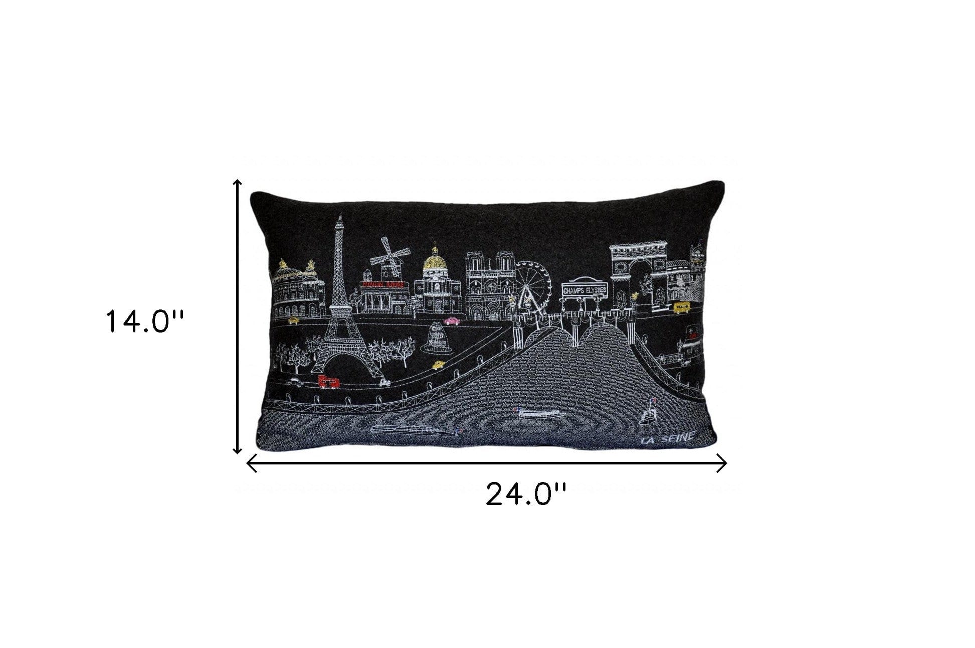 24" Black and White Paris Nighttime Skyline Standard Lumbar Decorative Pillow