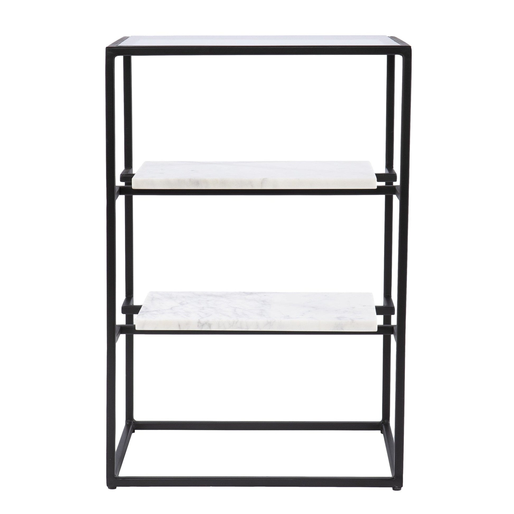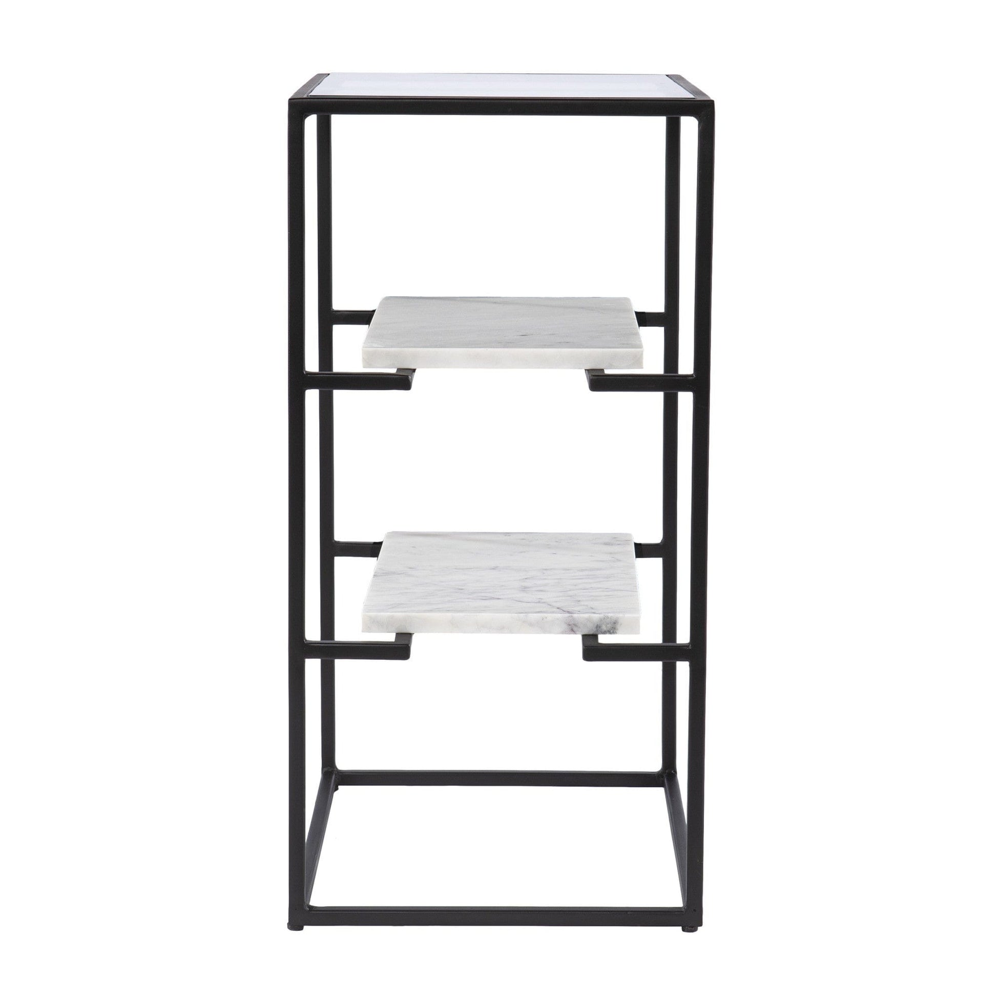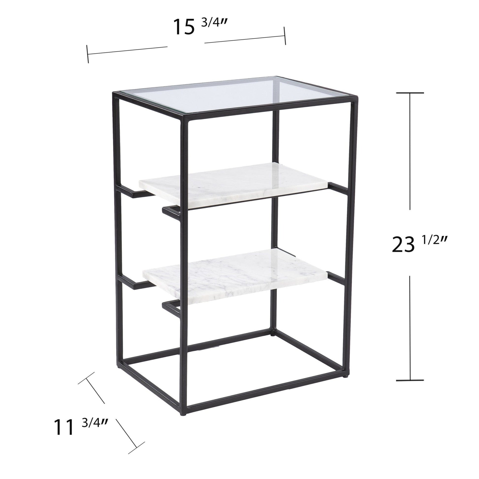 24" Black Glass and Marble Rectangular End Table With Two Shelves