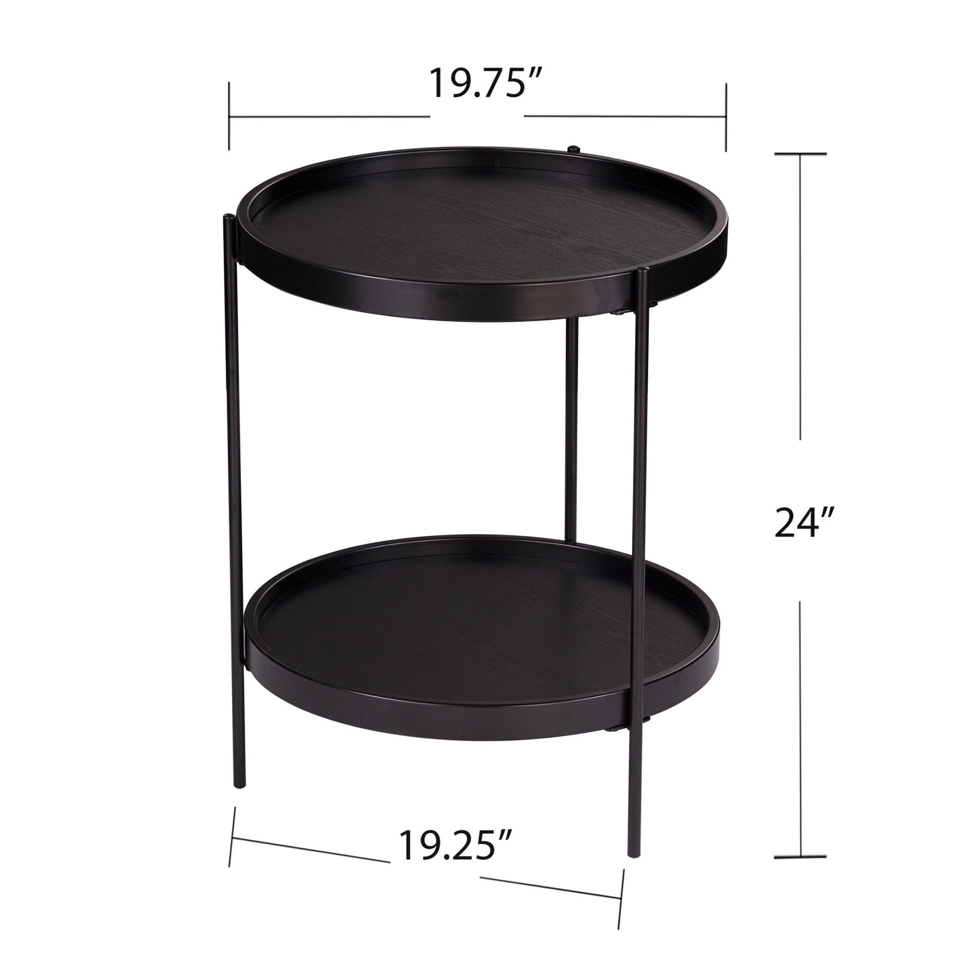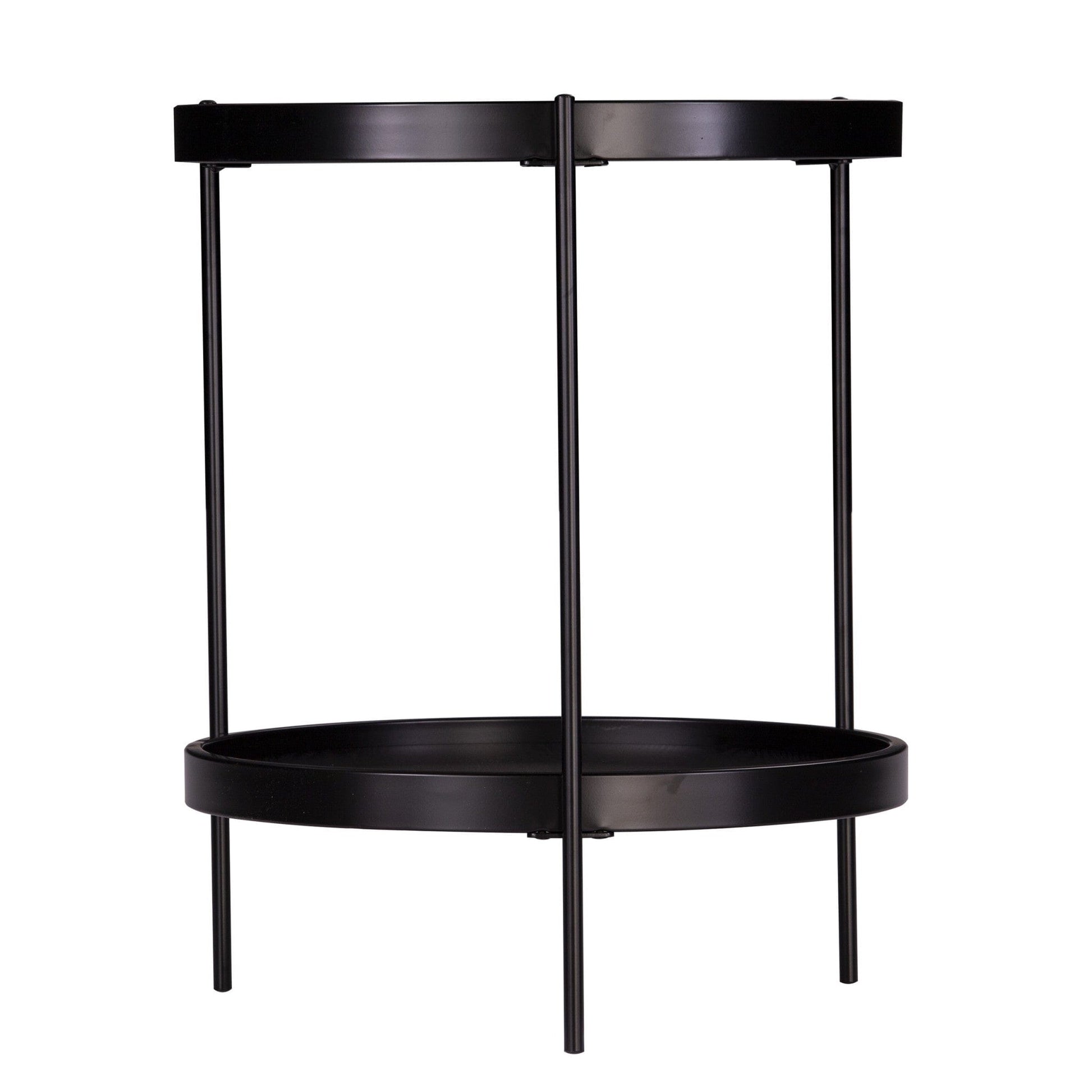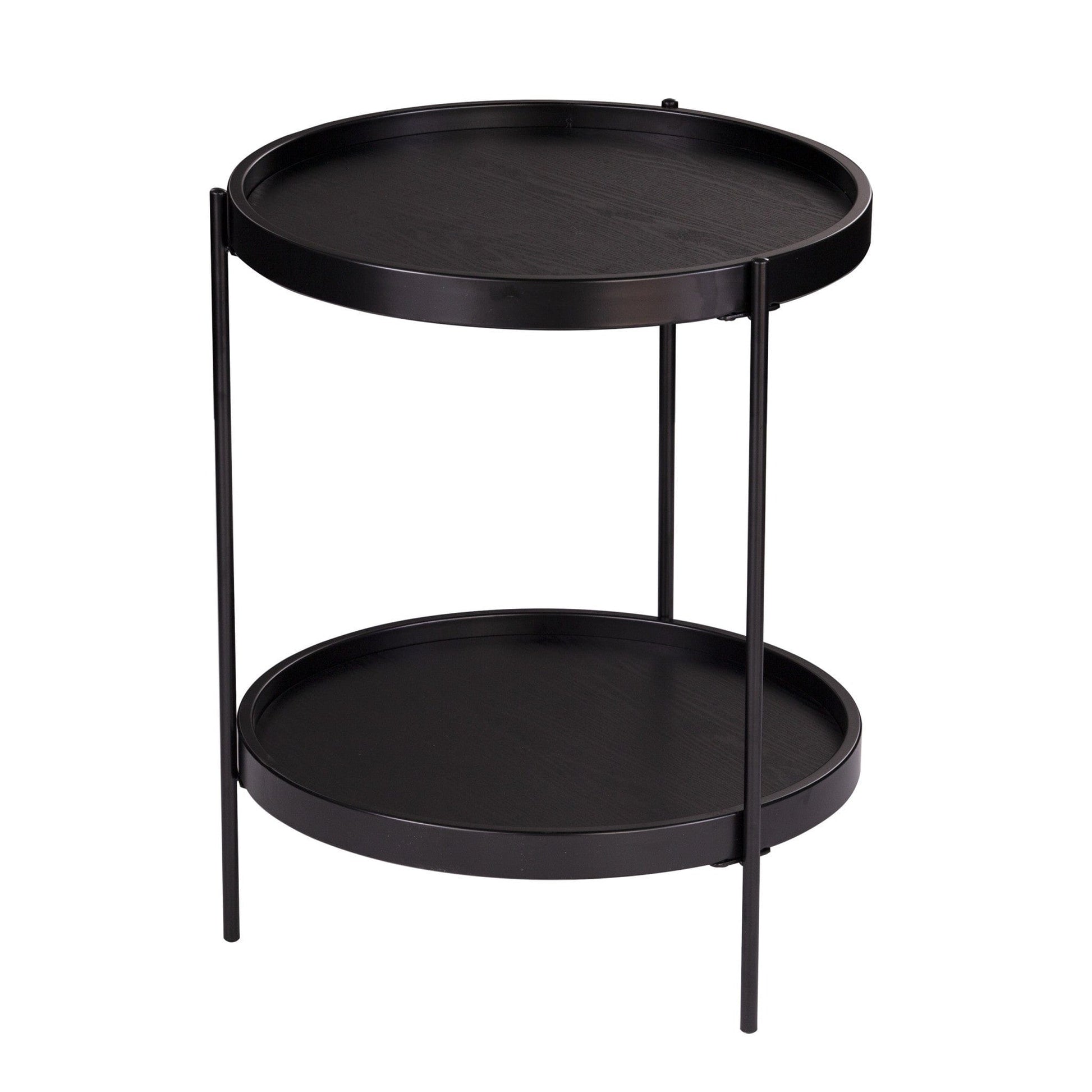 24" Black Manufactured Wood And Iron Round End Table With Shelf