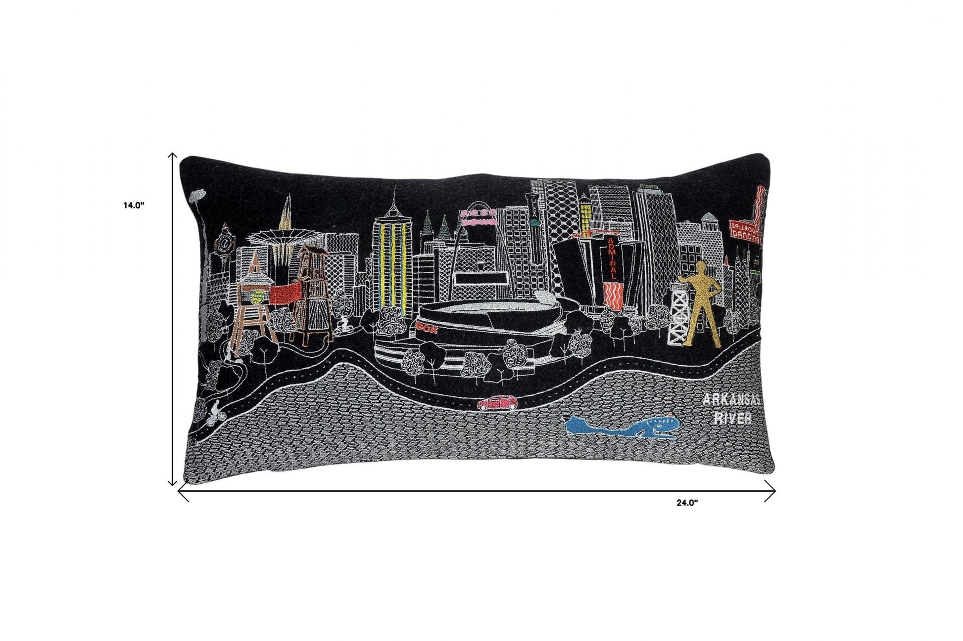 24" Black Tulsa Nighttime Skyline Lumbar Decorative Pillow
