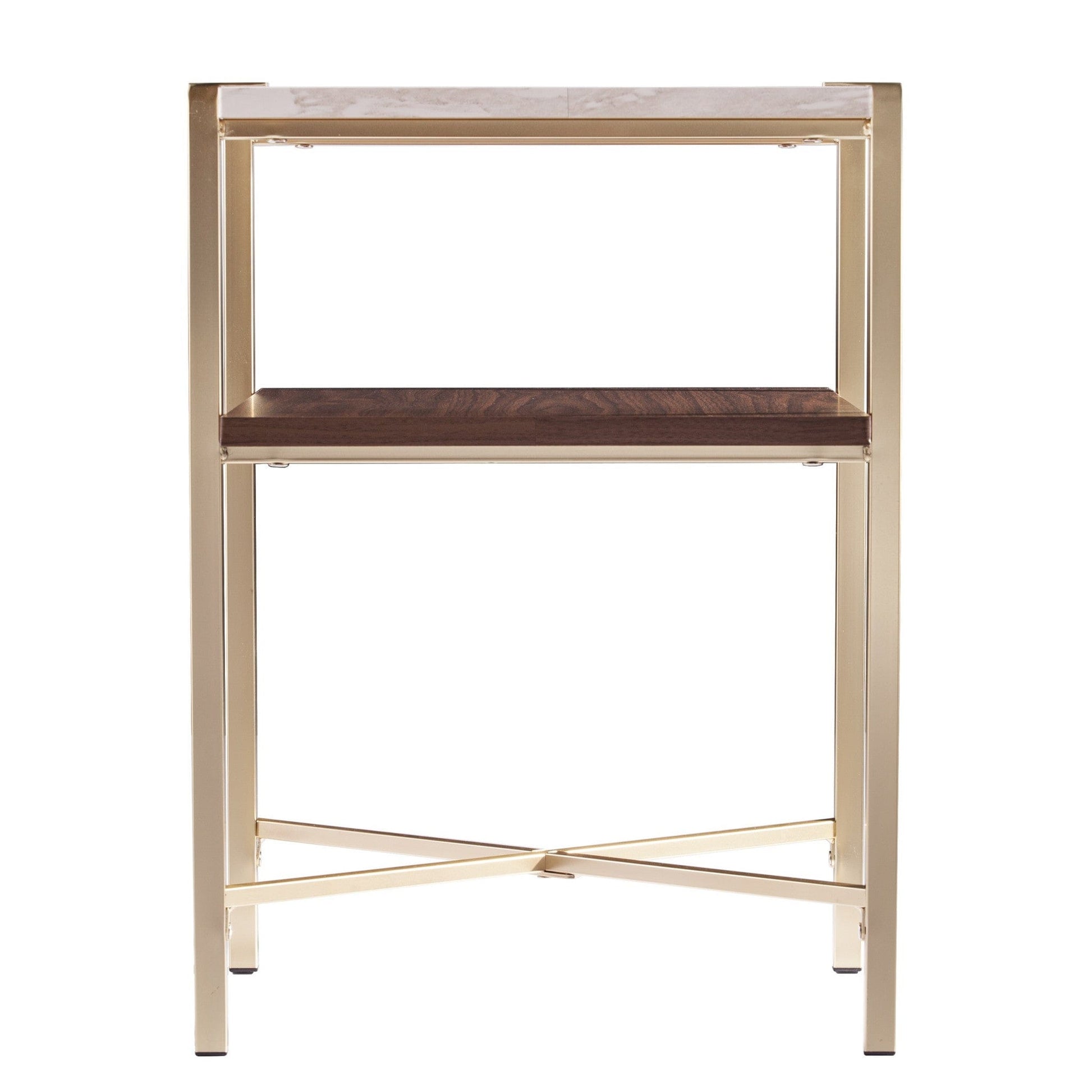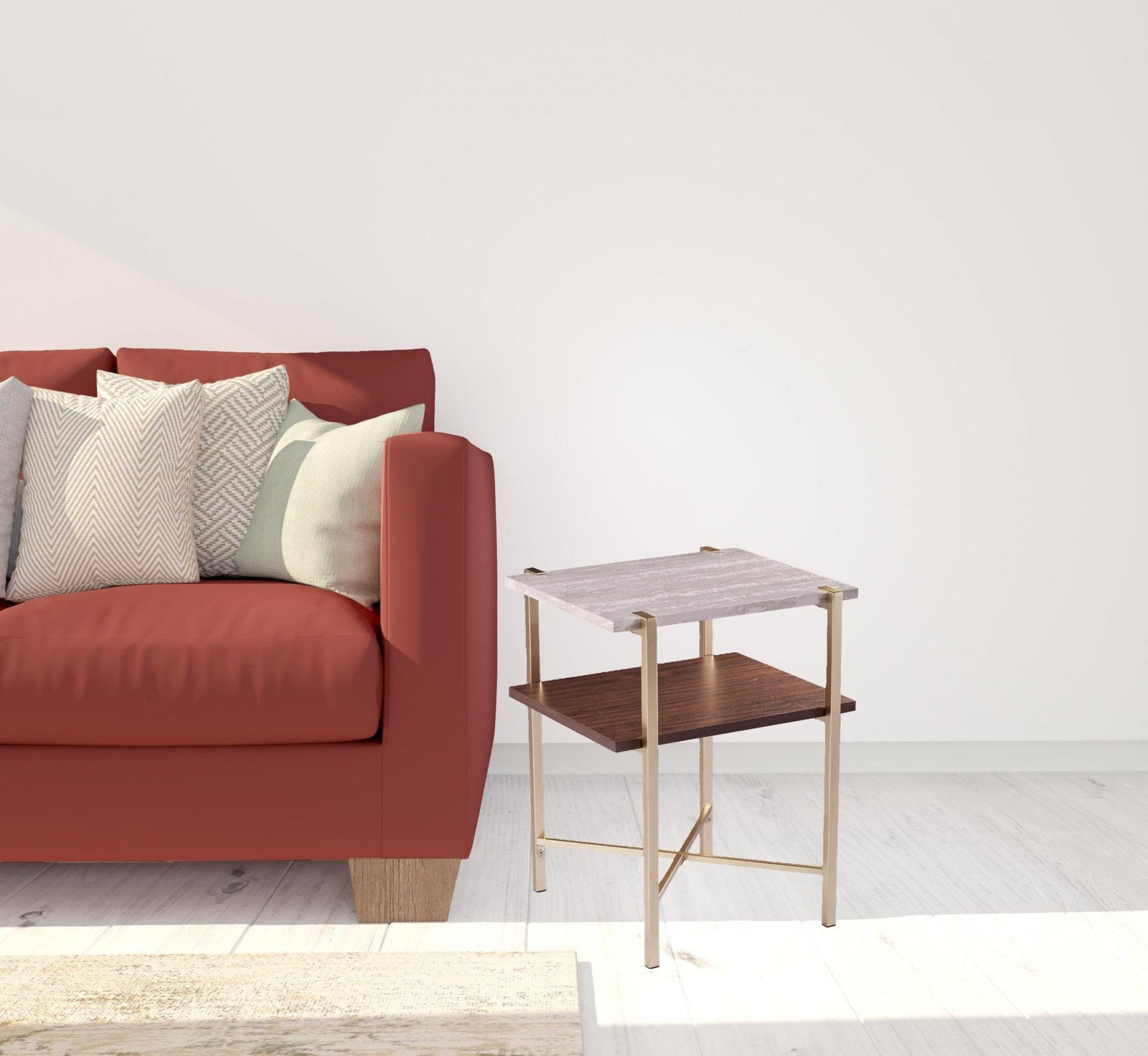 24" Brass Manufactured Wood And Iron Square End Table With Shelf