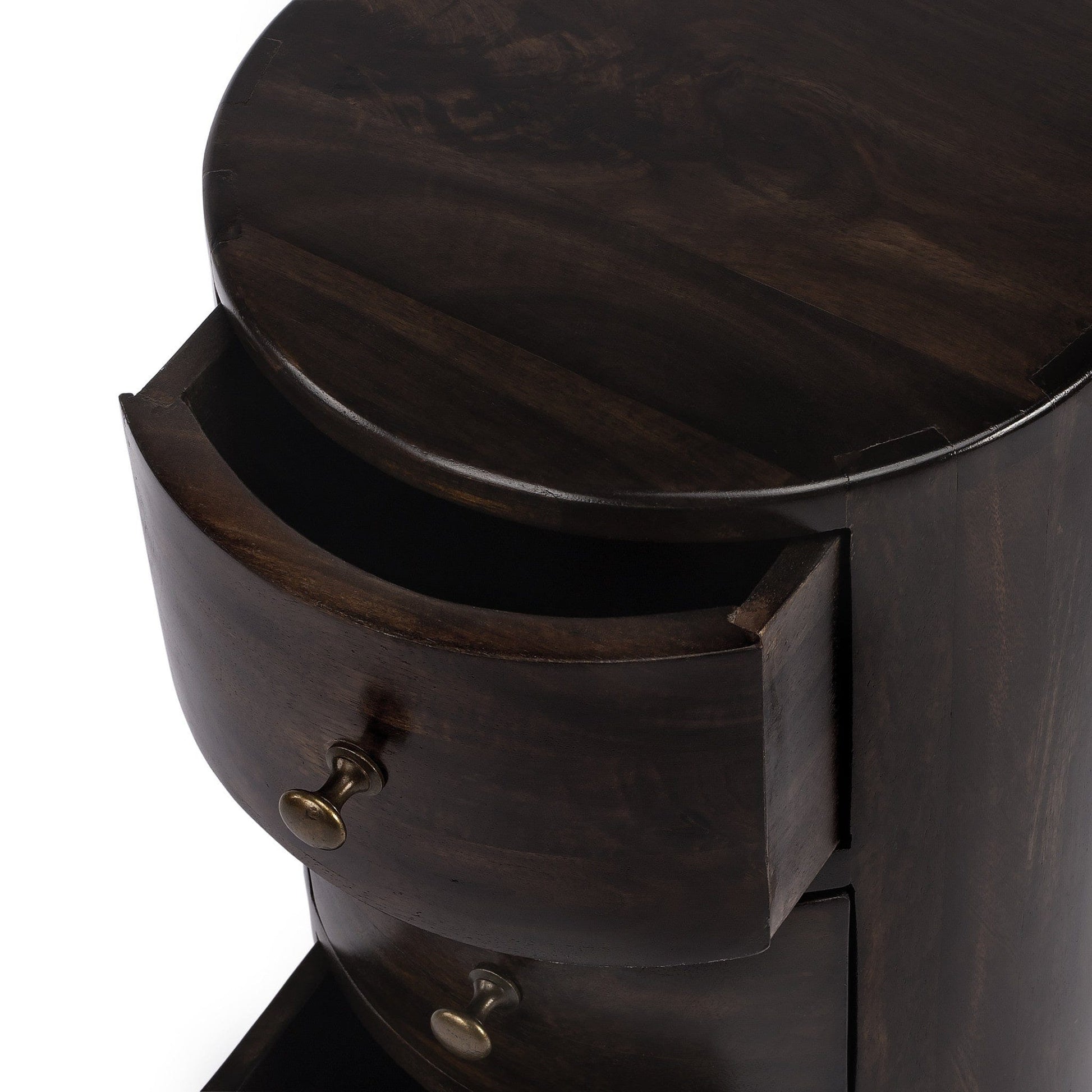 | Keywords | wood round end table drawers, chocolate wood round end table, round end table drawers, 24" dark brown chocolate wood, end table drawers |
