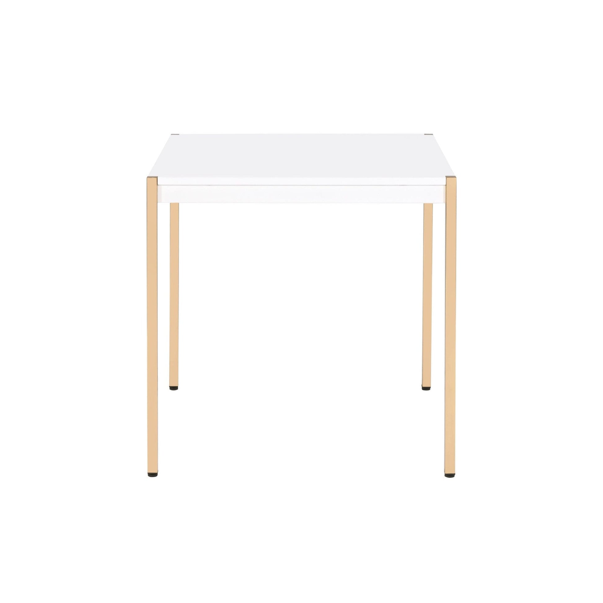 Distinctive in style the 24" gold and white manufactured wood square end table radiates a versatile charm. The white manufactured wood top of this table is a nice contrast to the high quality, gold metal of the base. Side tables are a great way to flank your sofa, use as an accent next to your favorite chair, or can even be used bedside. You can also use it as an entryway table to hold your keys. 24" H x 24" W x 24" D