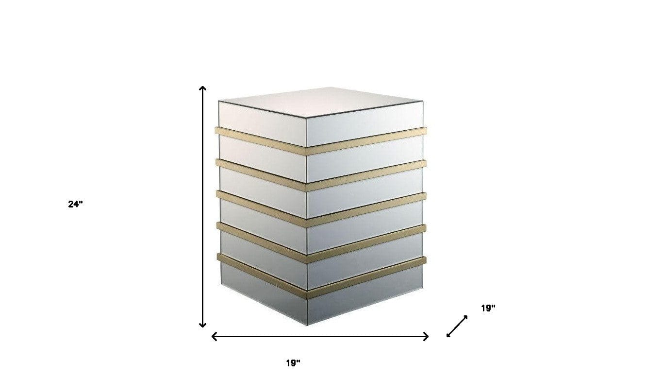 24" Silver Glass And Stainless Steel Square Mirrored End Table