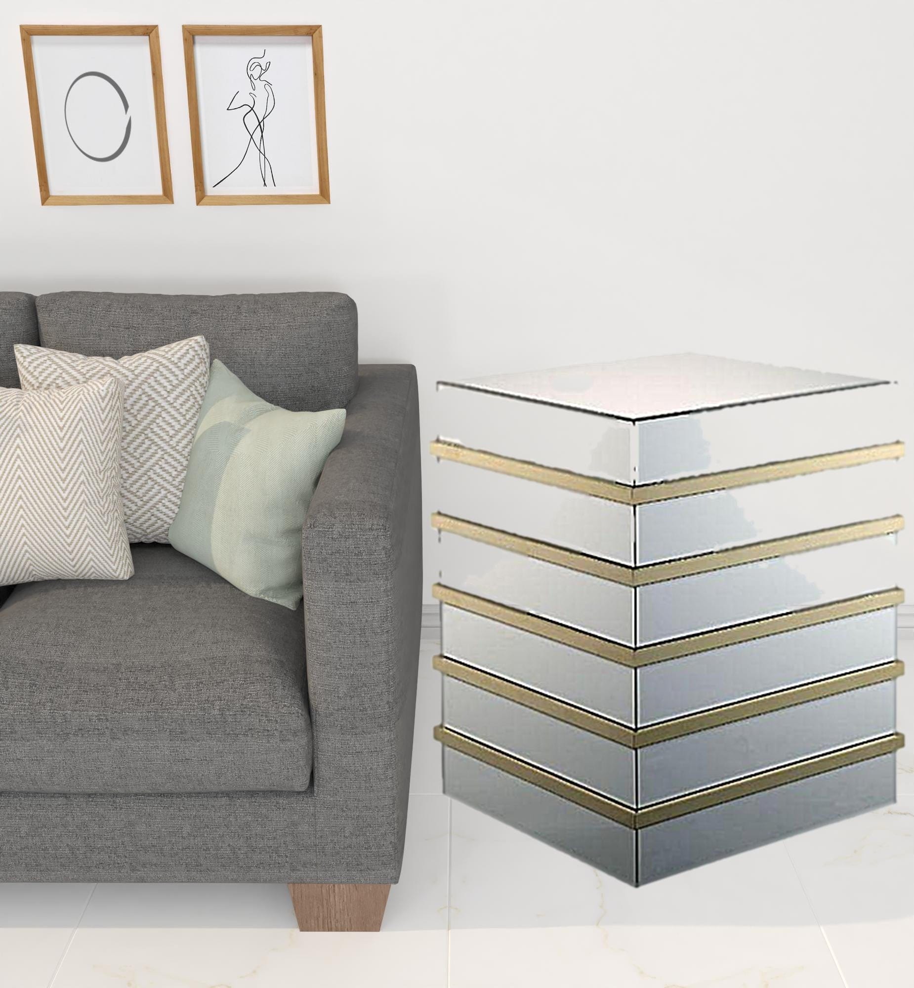Optimize your space and add some charm to your room with the 24" silver glass and stainless steel square mirrored end table. A solid silver stainless steel frame is finished off with a matching silver glass seat, giving this table a chic monotone look. Reflective pieces of mirrored glass give this table a glamorous and unique look. A great accent on either side of the sofa or bed, this adorable end or side table is just what you need. You can match it with other pieces to get the ideal look for your place. 24" H x 19" W x 19" D