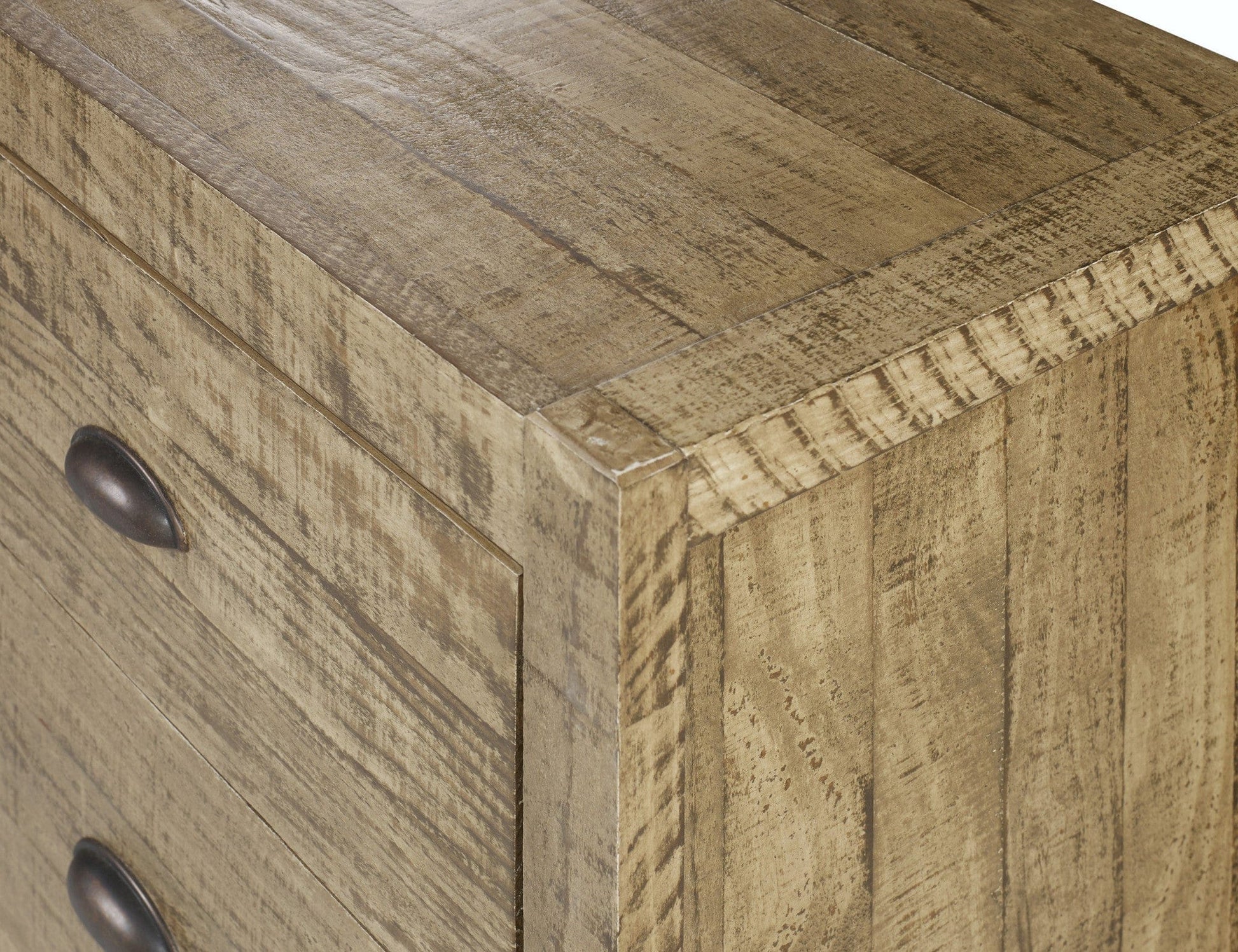 Clean lines mix with a distressed finish to give this 24" Walnut Golden Brown Distressed Two Drawer Solid Wood Nightstand an updated and fresh look. Multi-functional design makes this piece great not only as a nightstand, but could also easily work as an end table in the living room, an accent or storage cabinet in the hallway, bath, or laundry room, or as a cabinet in your office. Made of high quality solid wood in a distressed and rustic finish with two easy pull out drawers for hidden storage, makes this nightstand just about perfect 22.5" x 23.5" x 15.8"